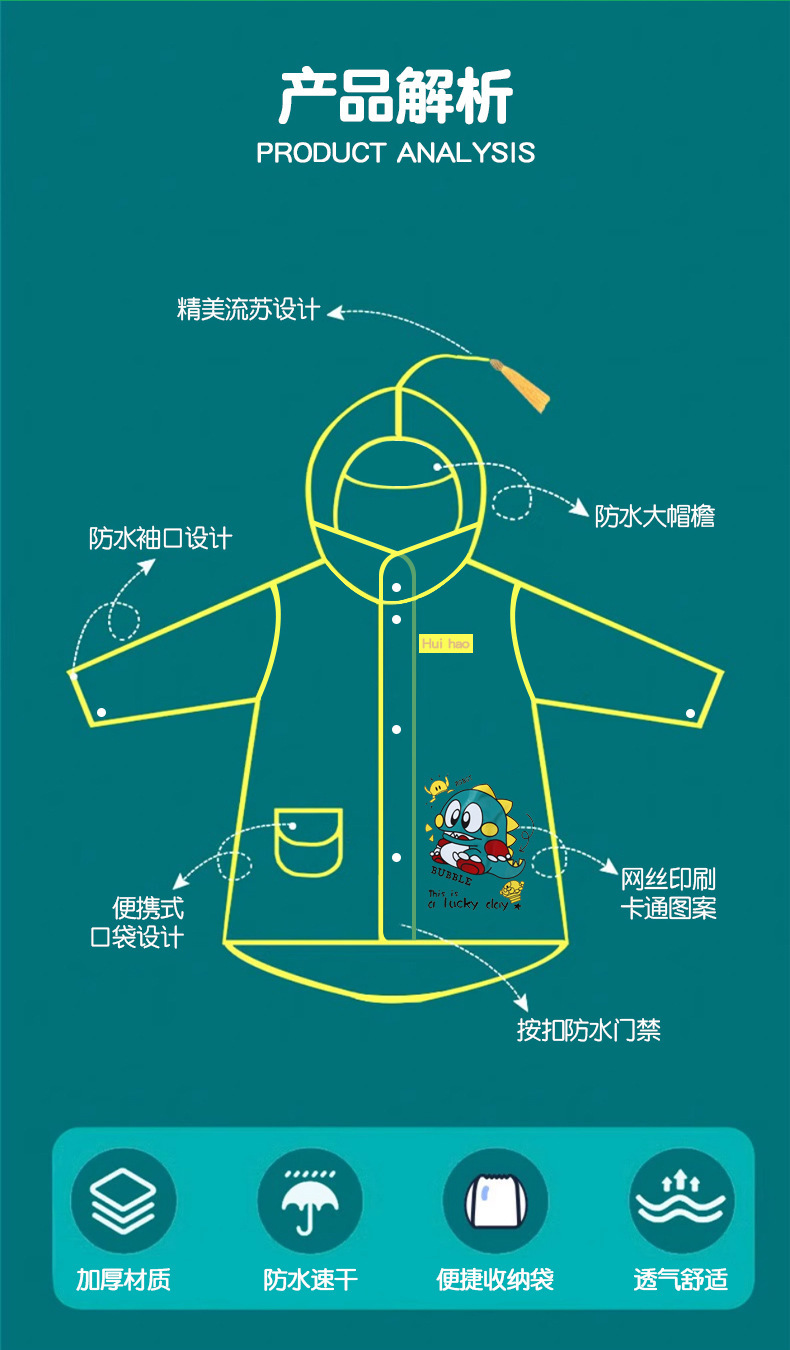 어린이 비옷 소년과 소녀 방수 전신 비옷 유치원 비옷 귀여운 만화 공룡 고가치 카드스토어 가기