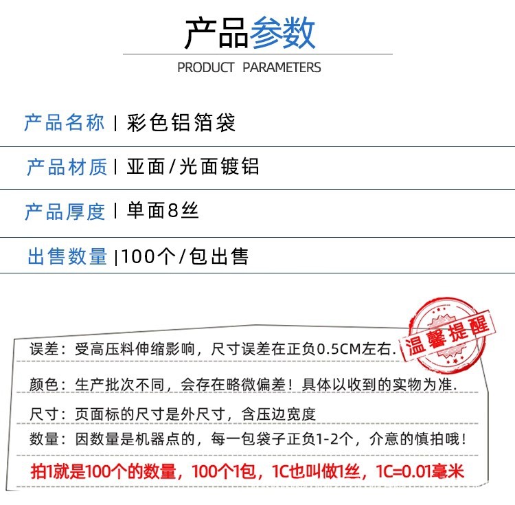 • 황록색 광택, 복합 알루미늄 도금, 6*9CM