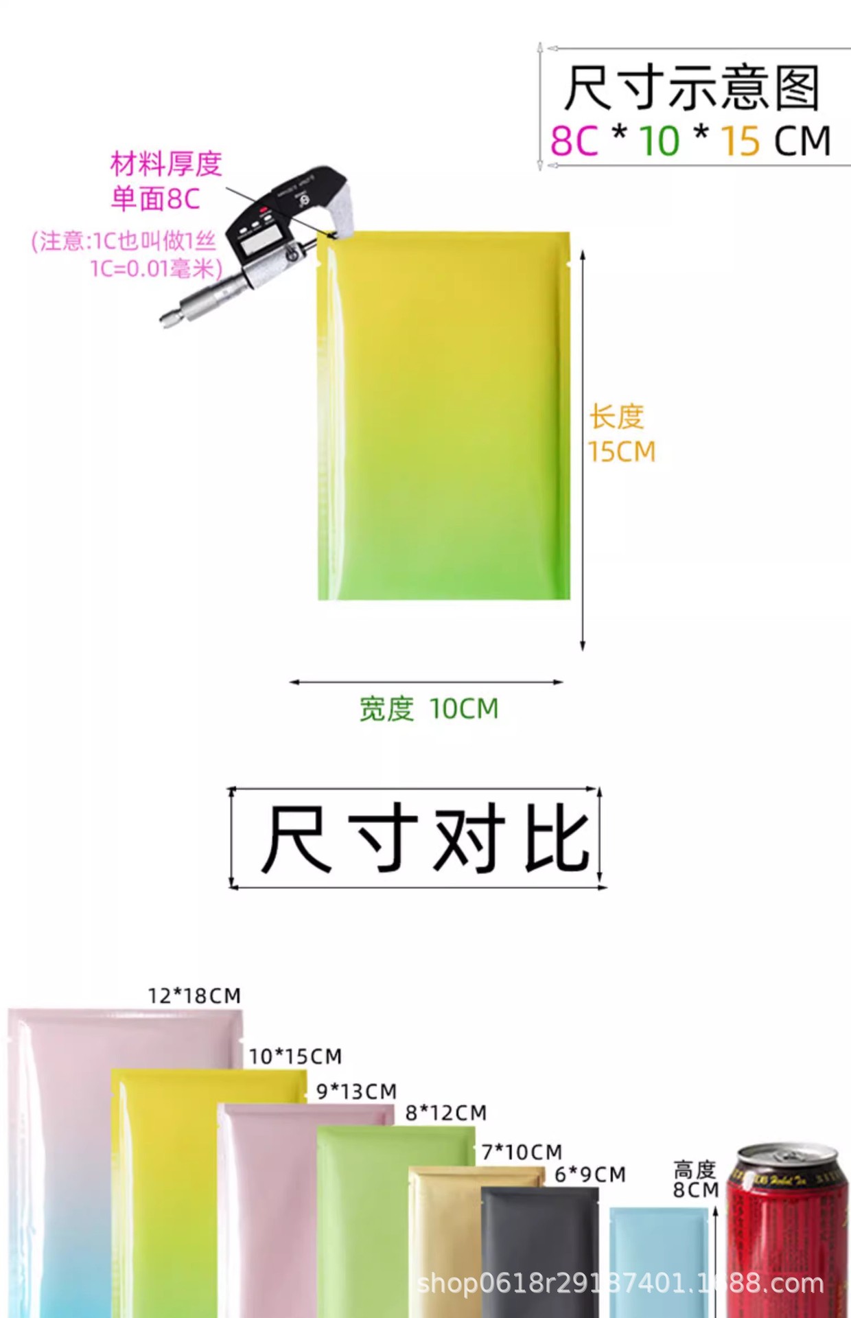 • 황록색 광택, 복합 알루미늄 도금, 8*12CM