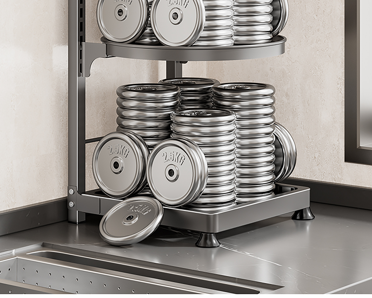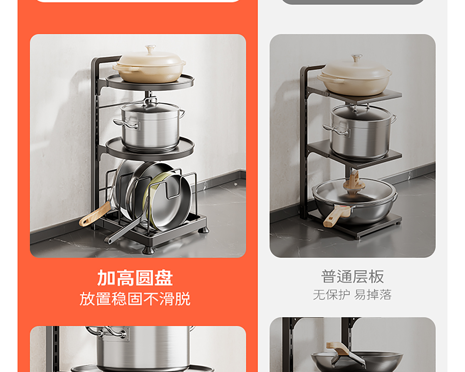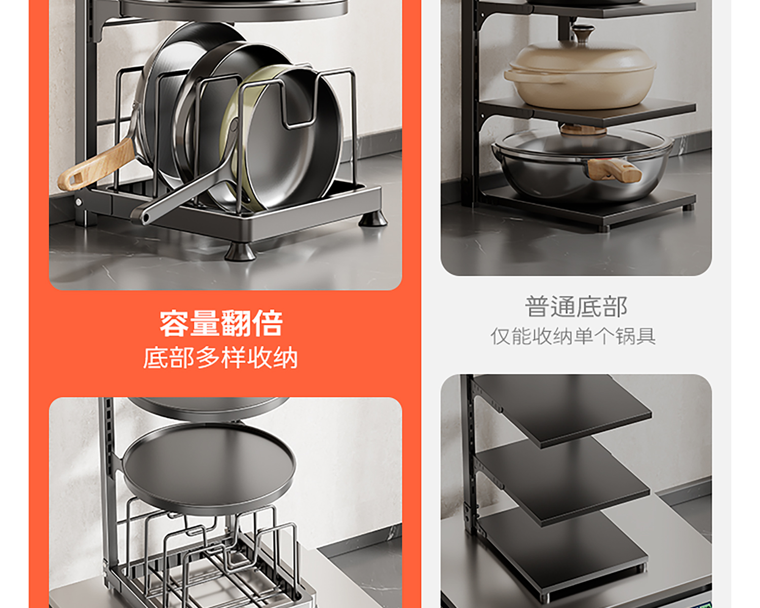 주방 수납 선반 다기능 가정용 냄비 수납 선반 캐비닛 계층형 싱크대 아래 스토브 다층 냄비 선반스토어 가기