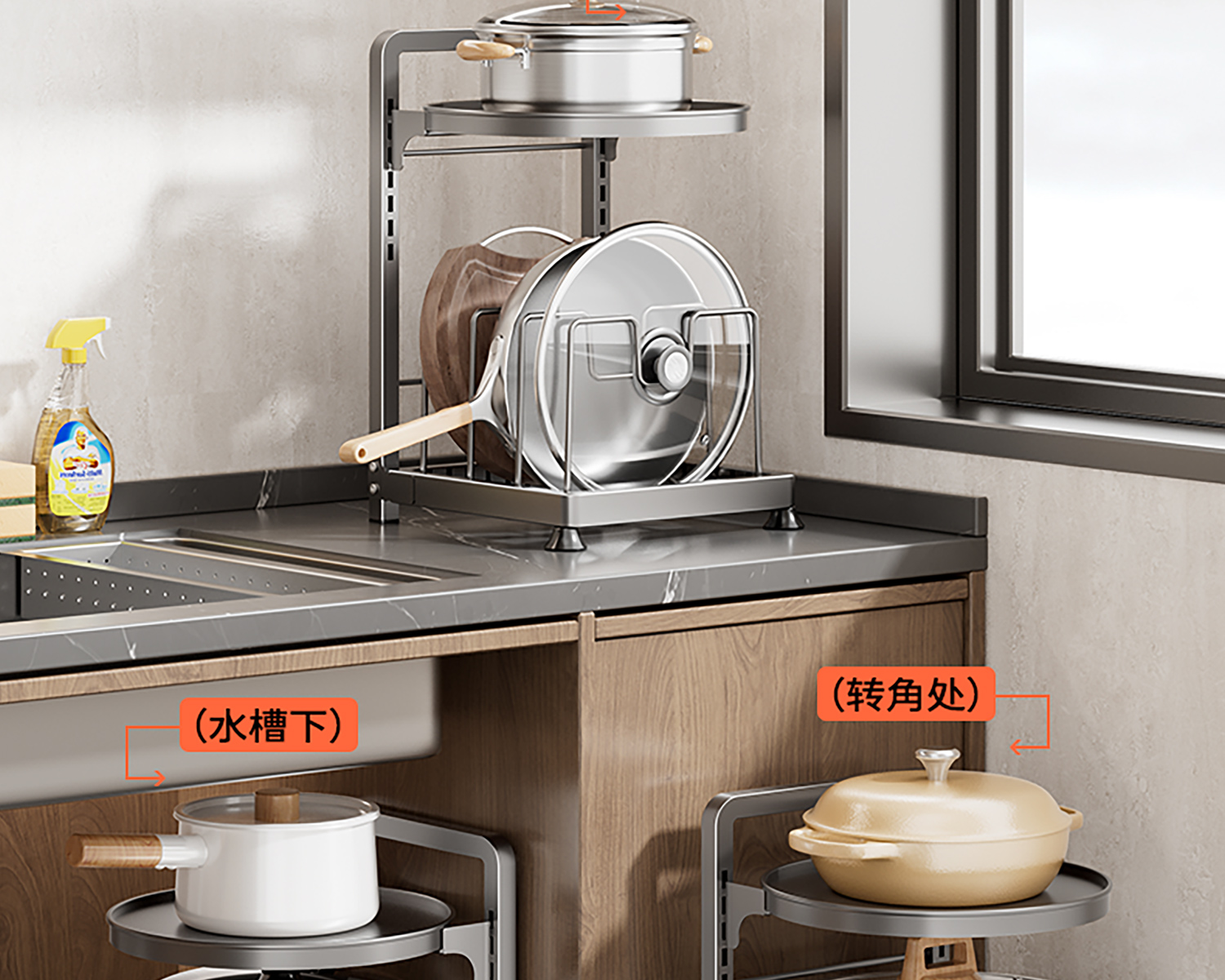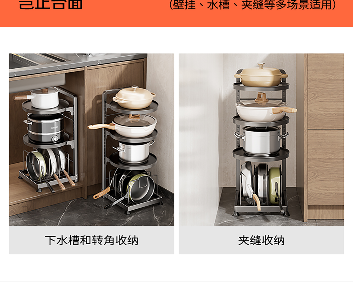 주방 수납 선반 다기능 가정용 냄비 수납 선반 캐비닛 계층형 싱크대 아래 스토브 다층 냄비 선반