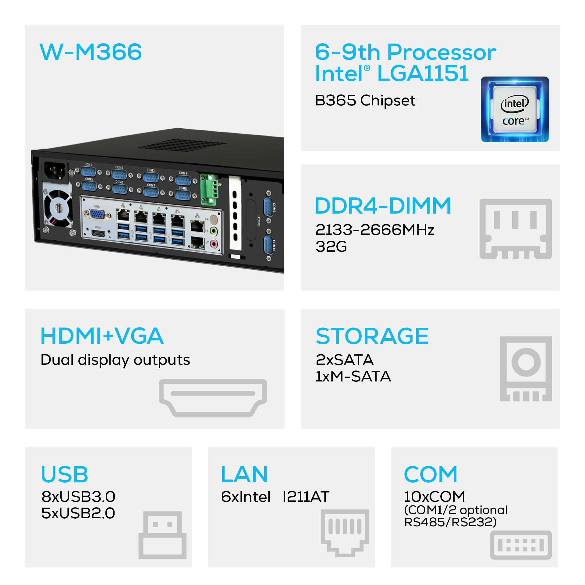 Weitmai M366 전체 기계 6 기가비트 이더넷 포트 10COM 머신 비전 검사 B365 칩셋 산업용 컴퓨터스토어 가기