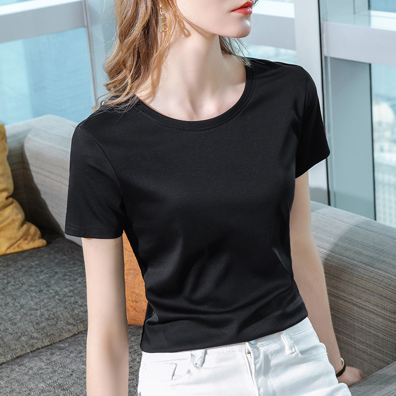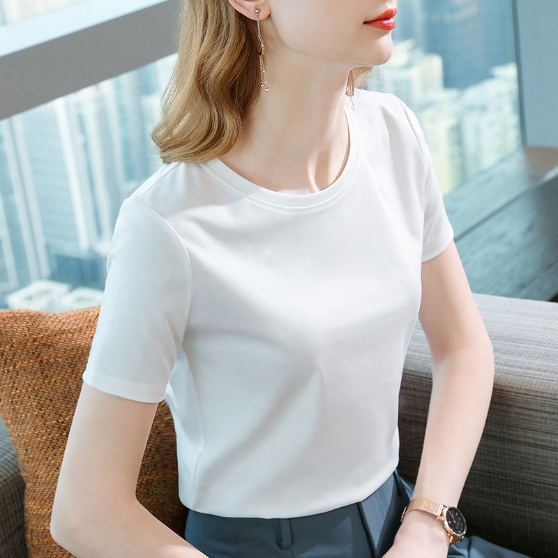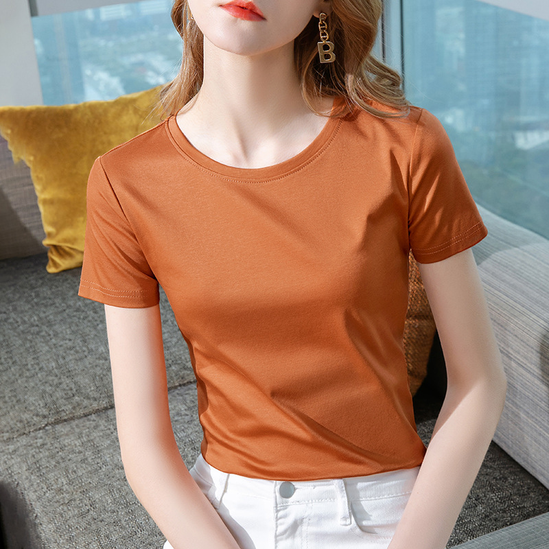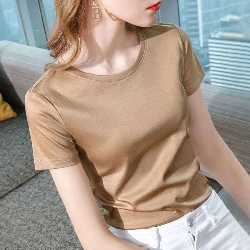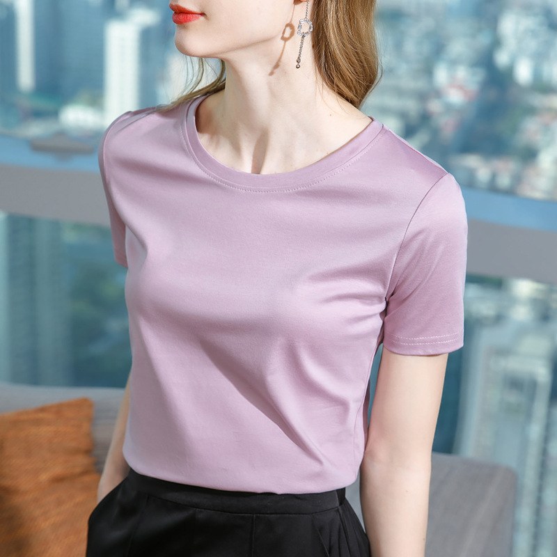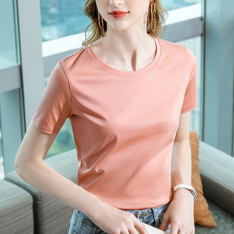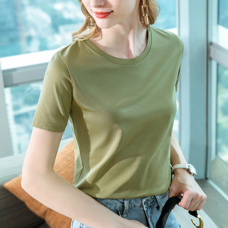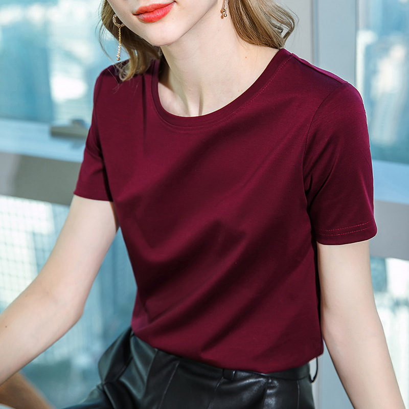 여성을위한 코튼 반팔 티셔츠 여름 2025 새로운 라운드 넥 버건디 슬림 피트 셔츠 탑스토어 가기