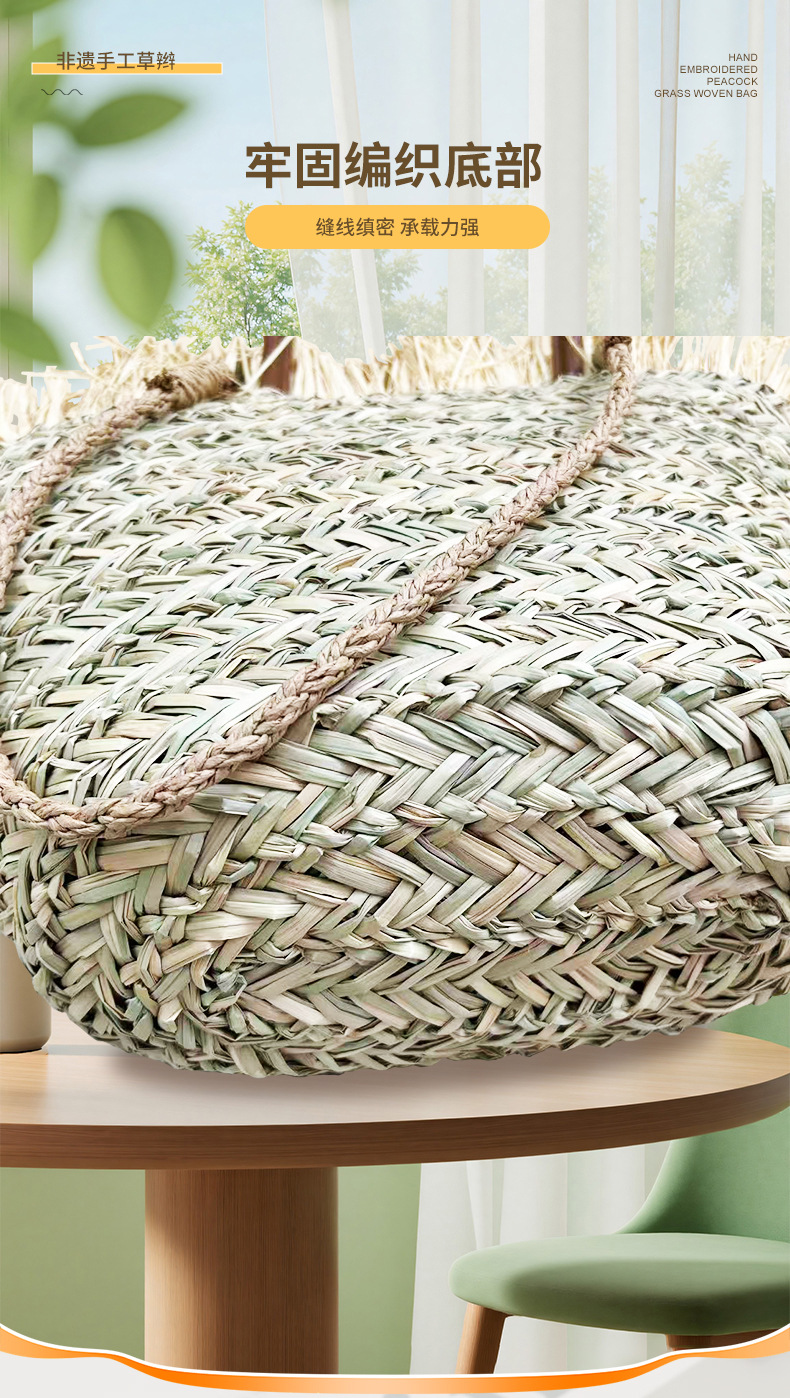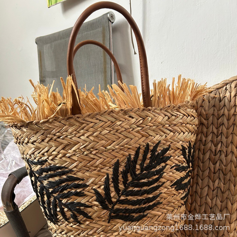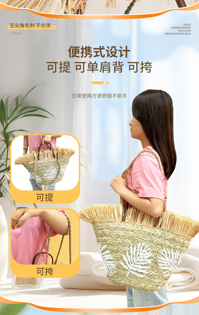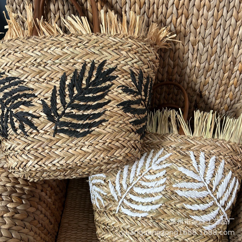 水草包绣花树叶手提肩背两用大容量肩包_07