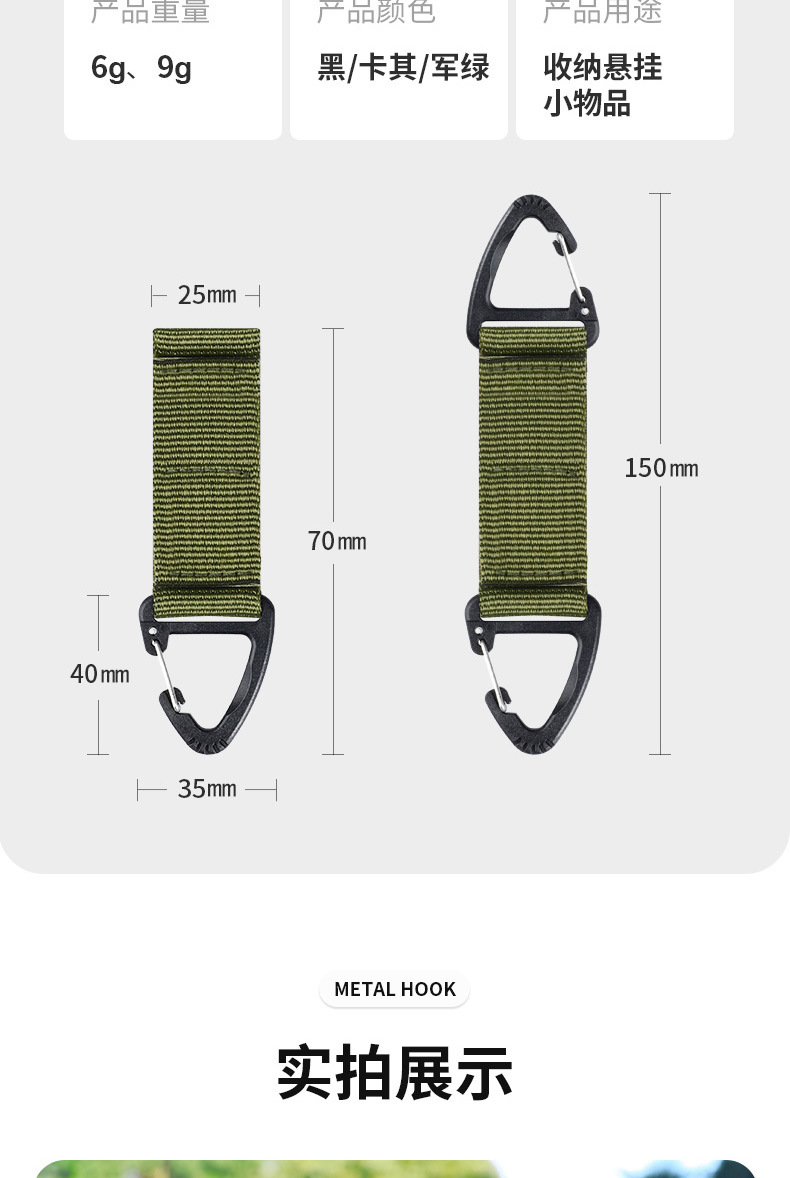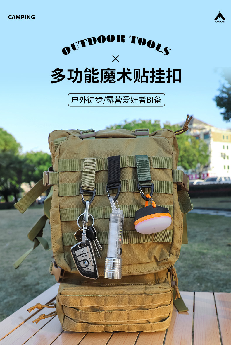 야외 후크, 웨빙 버클, 벨트 버클, 삼각형 후크, 배낭 카라비너, 다기능 링, 벨크로 후크스토어 가기