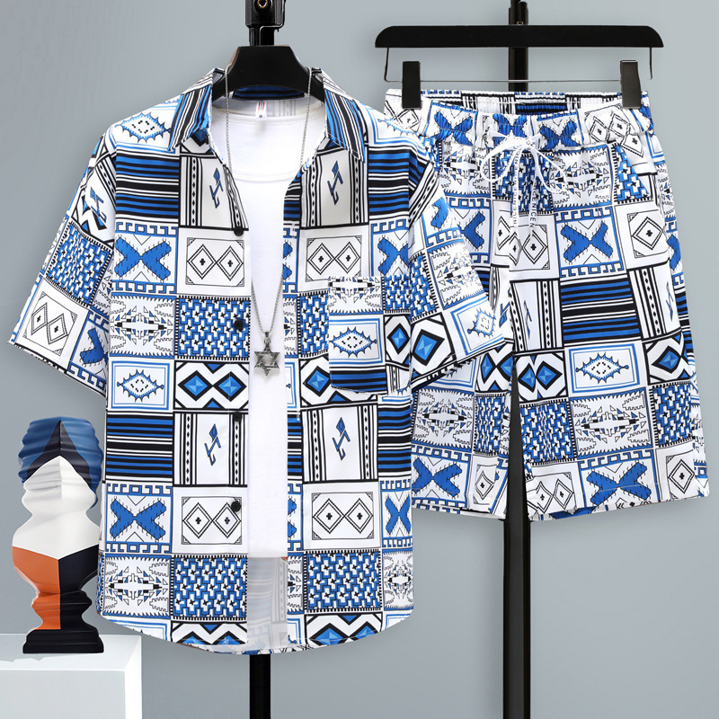 국경 간 남성용 반팔 정장 여름 청소년 학생 캐주얼 스포츠 셔츠 반바지 투피스 세트스토어 가기