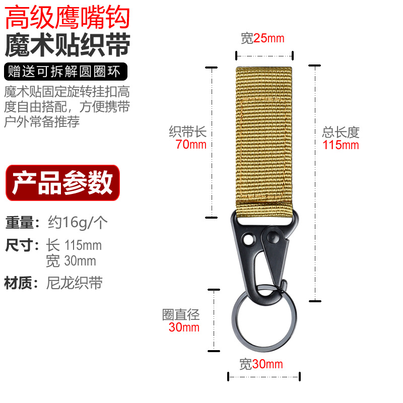 야외 전술 카라비너 ​​키 가방 액세서리 다기능 벨트 버클 나일론 웨빙 등산 후크 독수리 부리 버클