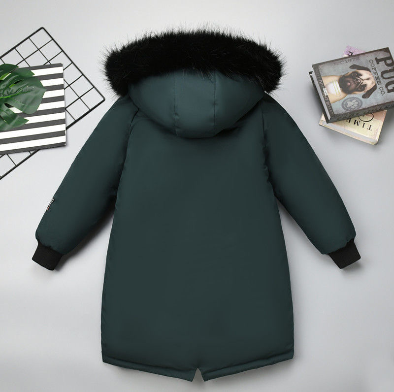 트렌디한 그라데이션 남아용 면 패딩 재킷, 후드와 가방이 포함된 중대형 아동용, 플리스 안감과 두꺼운 겨울 2025년형 아동용 재킷