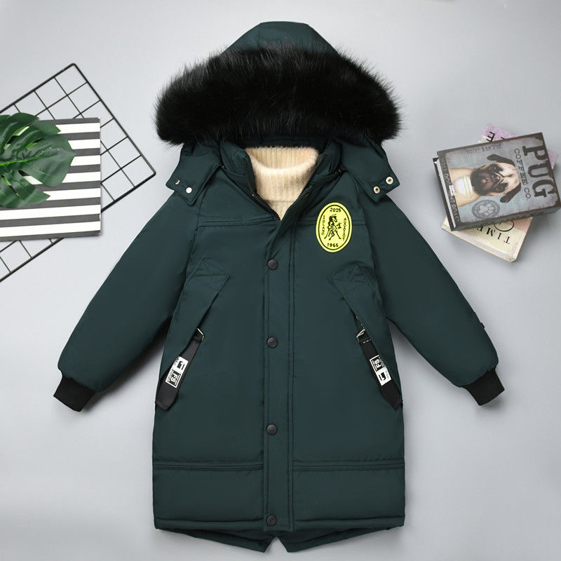 트렌디한 그라데이션 남아용 면 패딩 재킷, 후드와 가방이 포함된 중대형 아동용, 플리스 안감과 두꺼운 겨울 2025년형 아동용 재킷스토어 가기