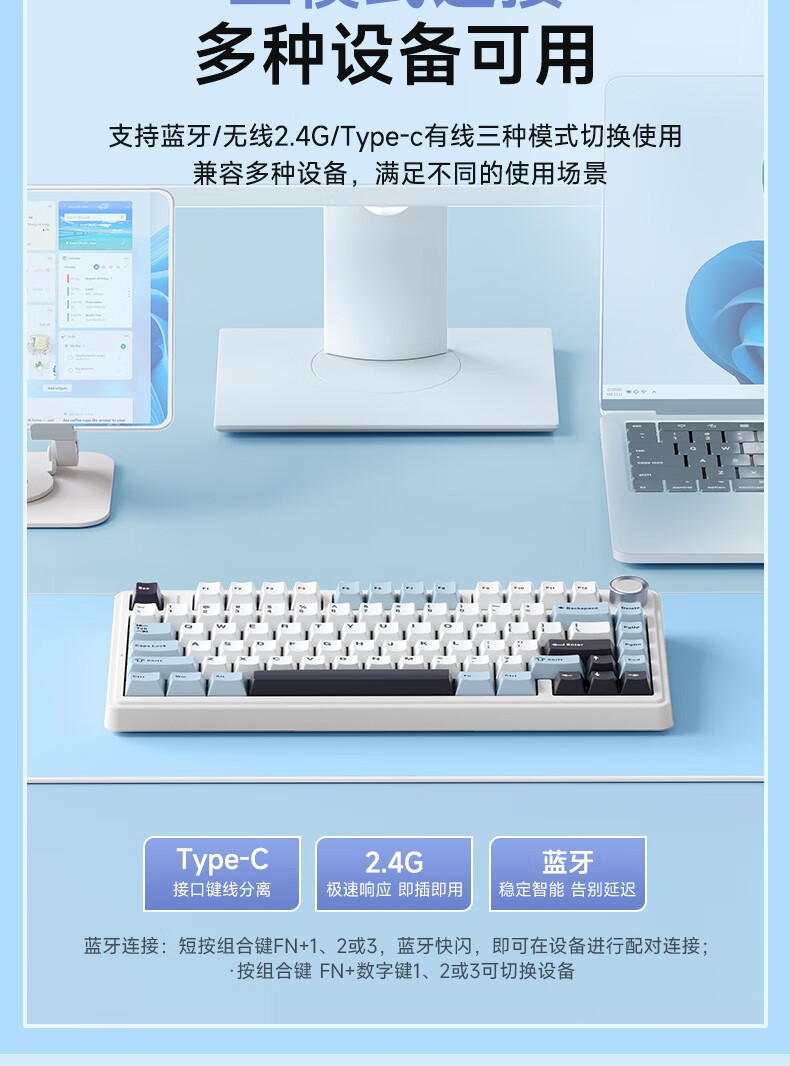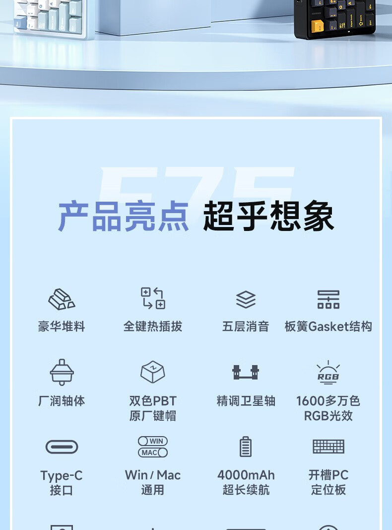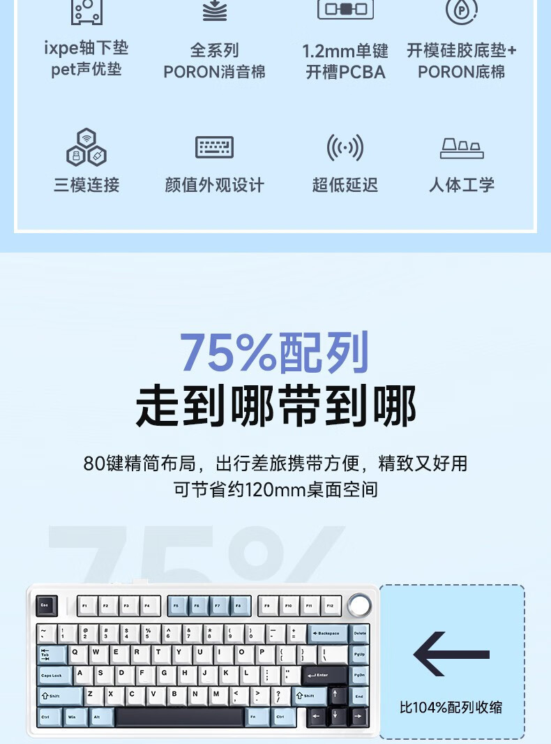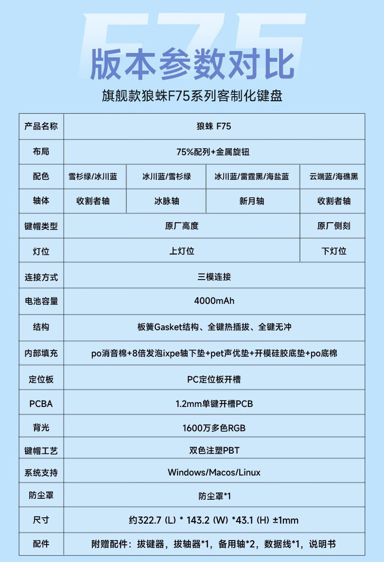 狼蛛F75三模客制化机械键盘