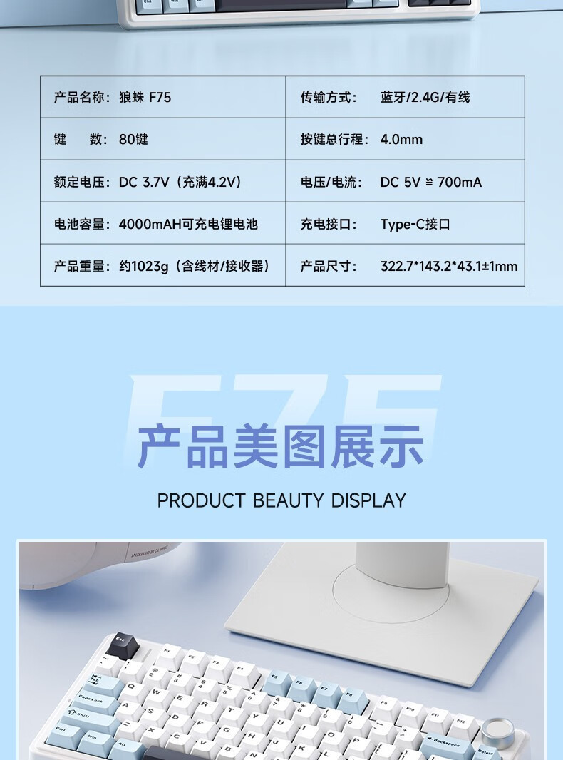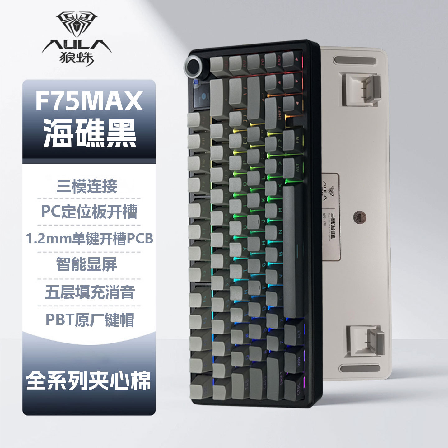 Wolf Spider F75MAX 맞춤형 기계식 키보드 3 모드 무선 RGB 조명 게임 e-스포츠 화면 디스플레이 측면 새겨진 키캡스토어 가기