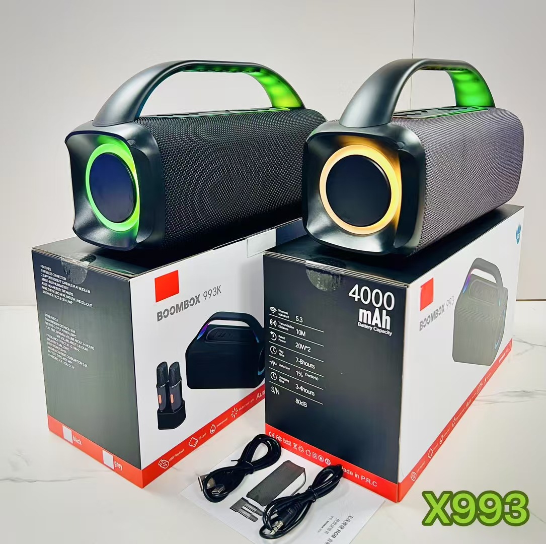 BOOMBO 새로운 X993 개인 모델 블루투스 스피커 야외 휴대용 RGB 컬러 라이트 서브 우퍼 30W 고출력 오디오