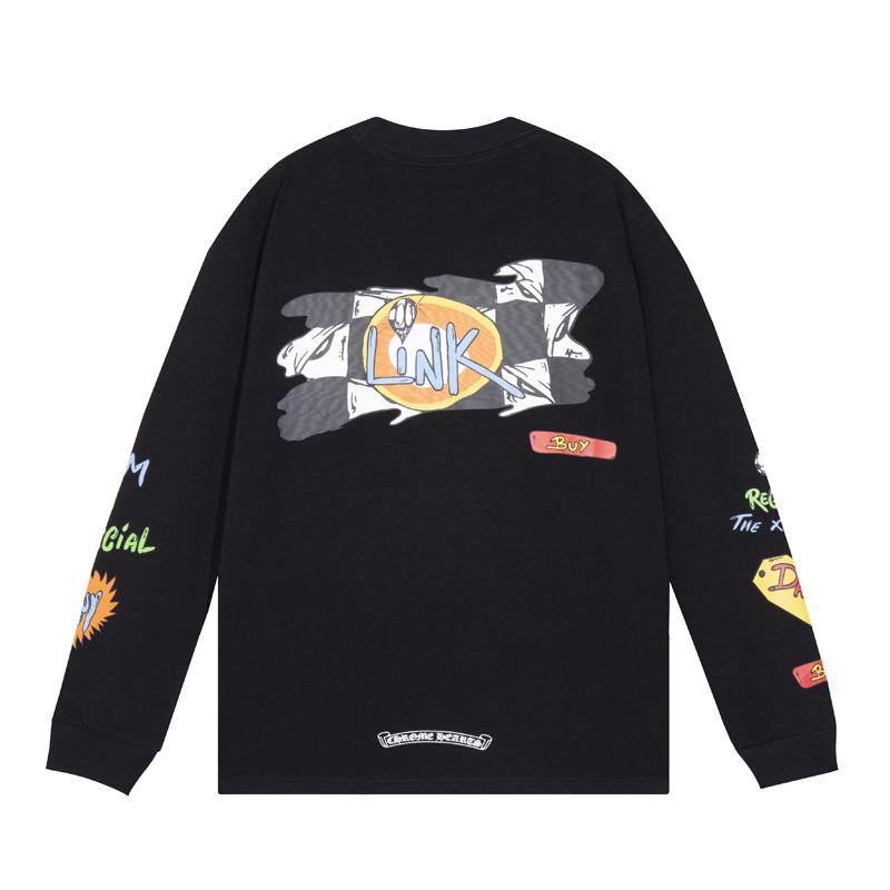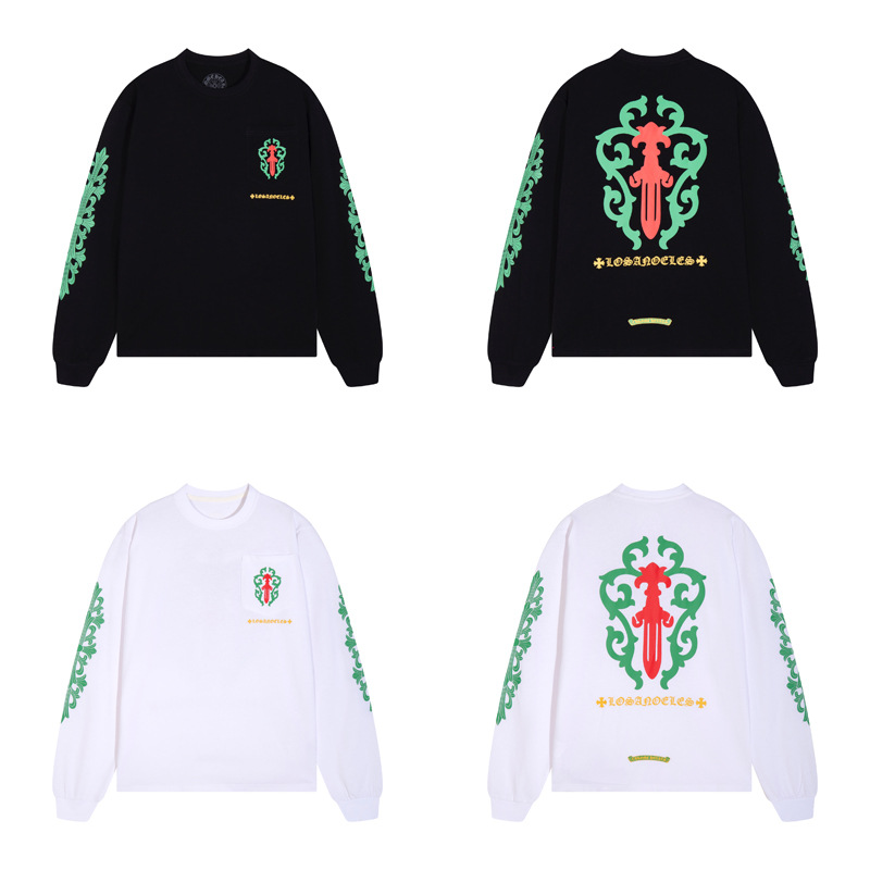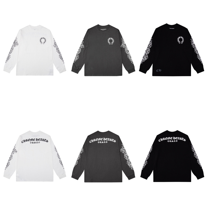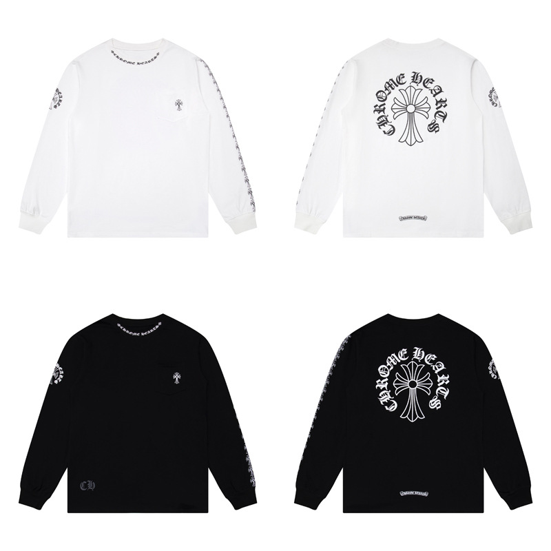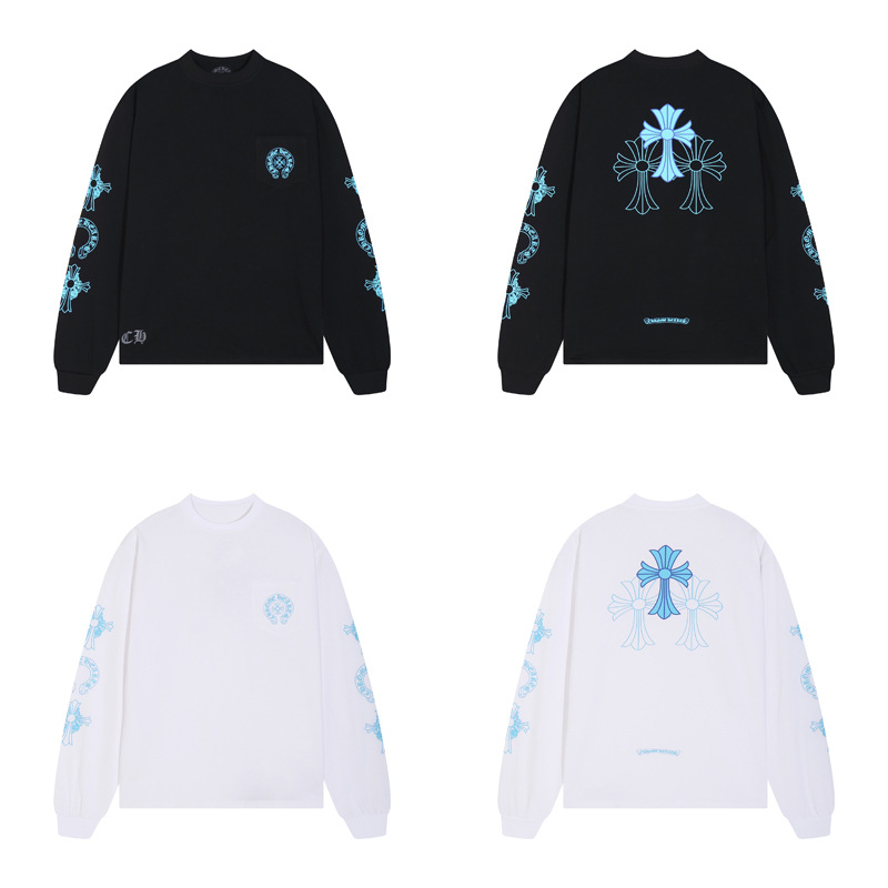 국경 간 트렌디 브랜드 Chrome Heart Chrome Heart 긴팔 티셔츠 순면 남성 및 여성 루즈 스팟 도매