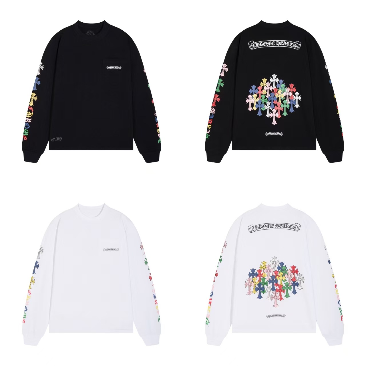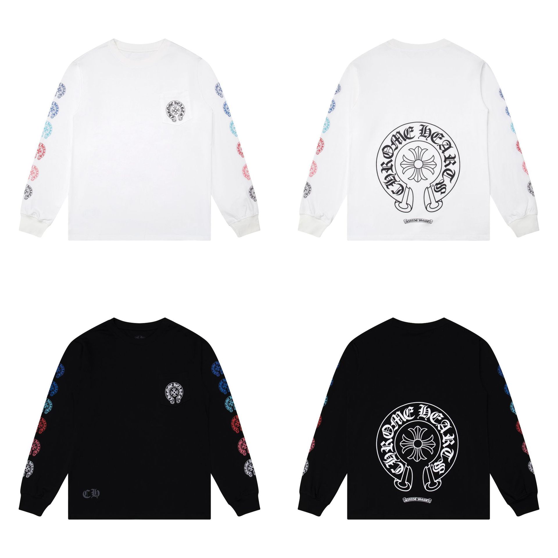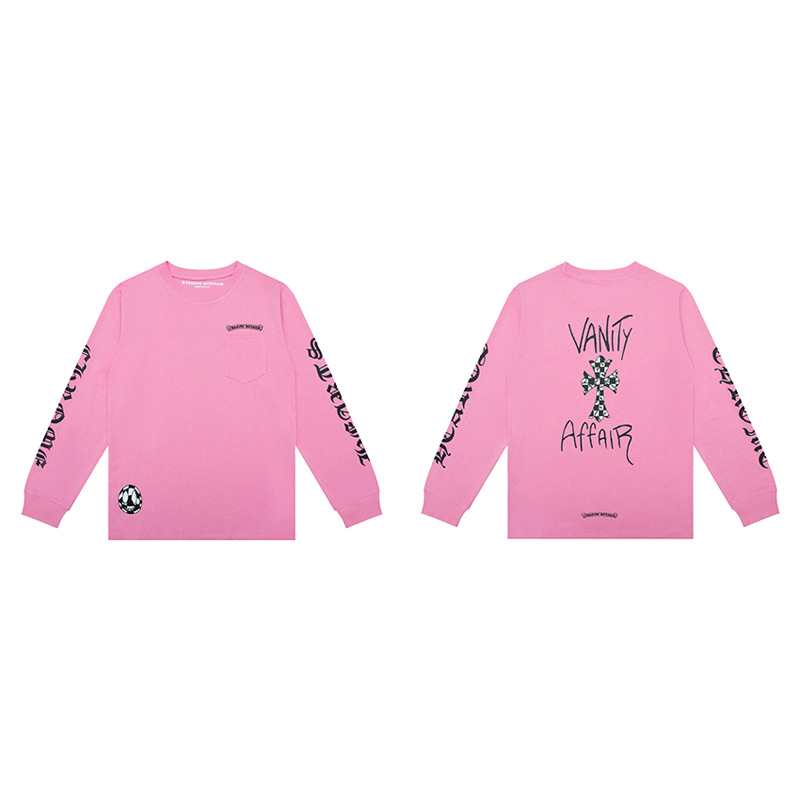 국경 간 트렌디 브랜드 Chrome Heart Chrome Heart 긴팔 티셔츠 순면 남성 및 여성 루즈 스팟 도매