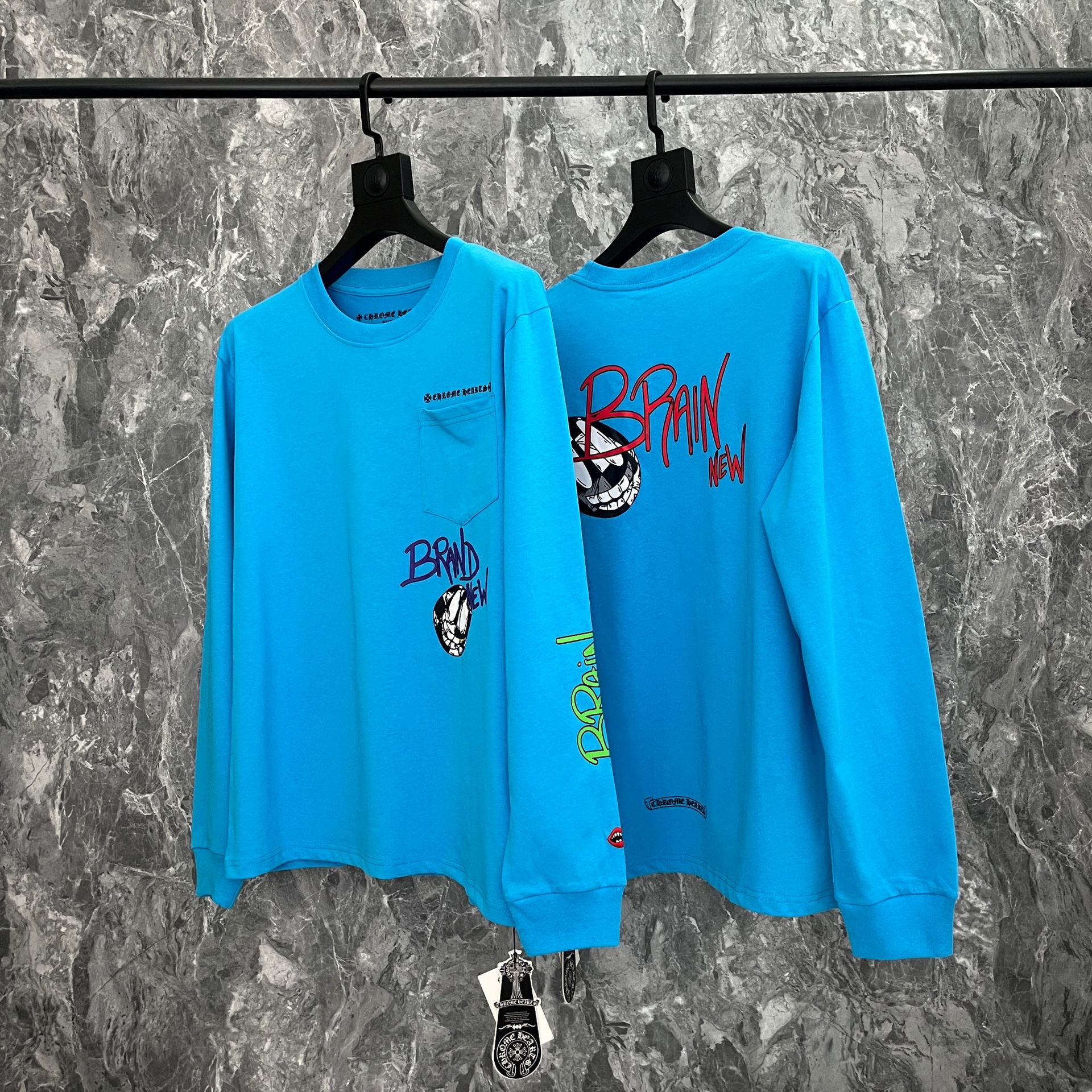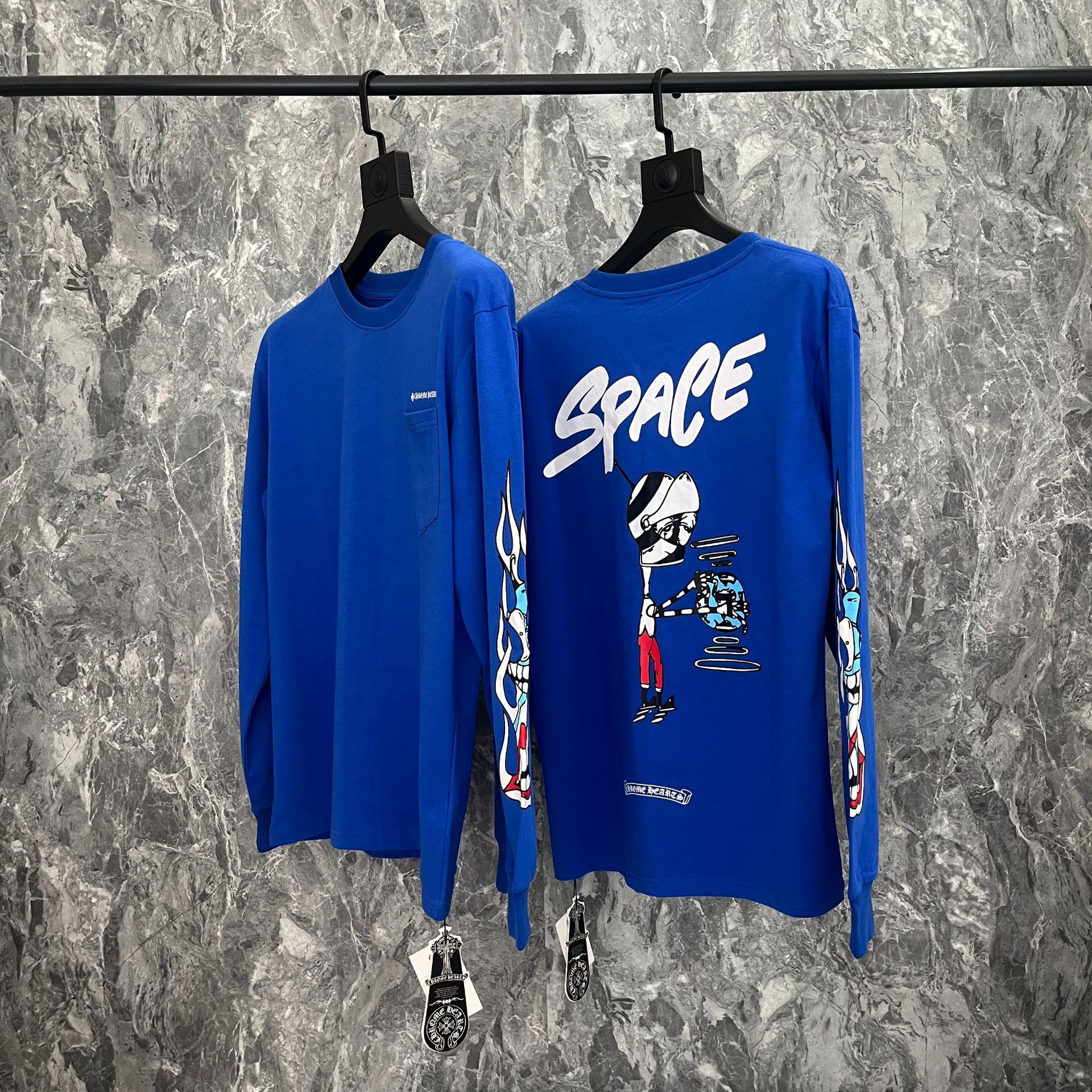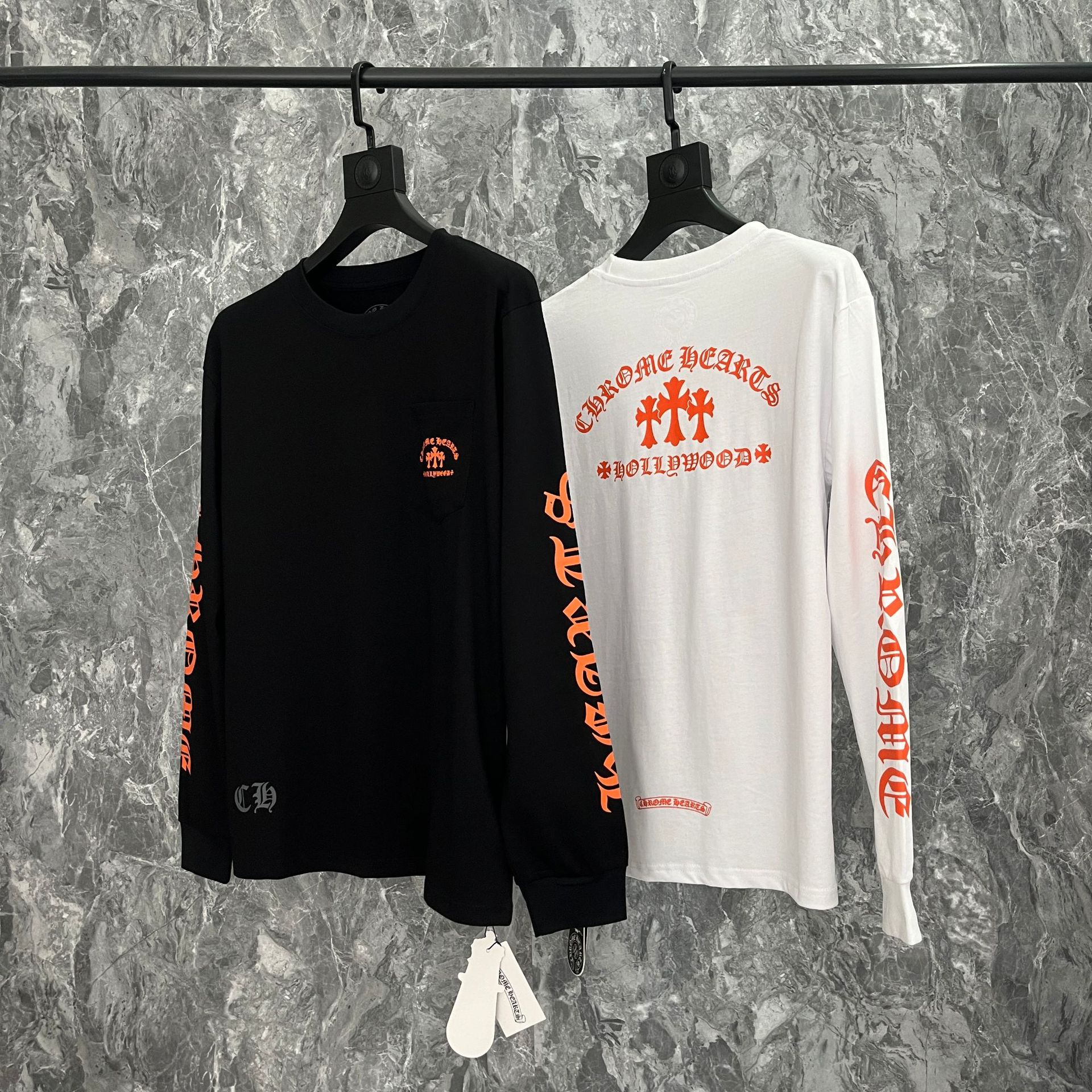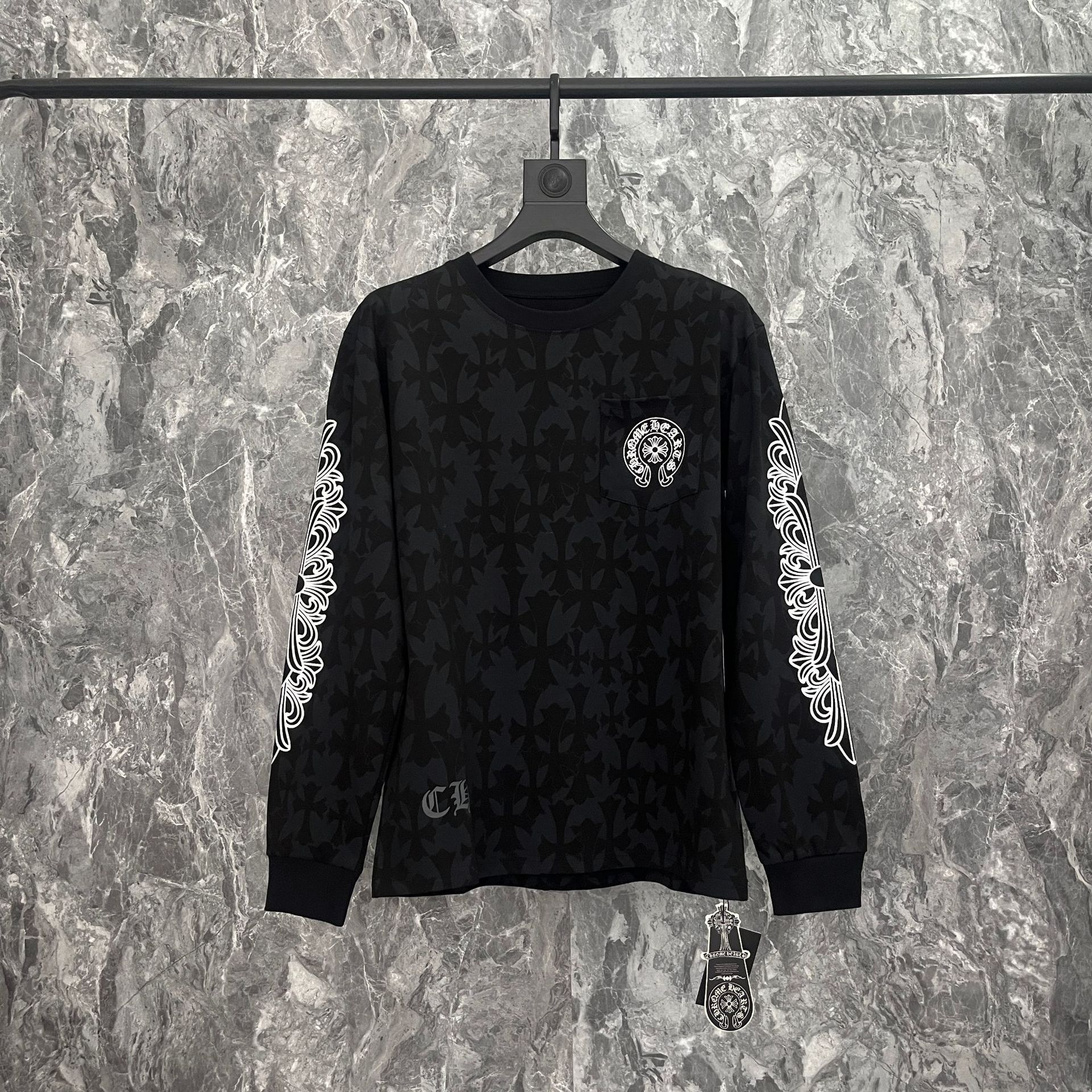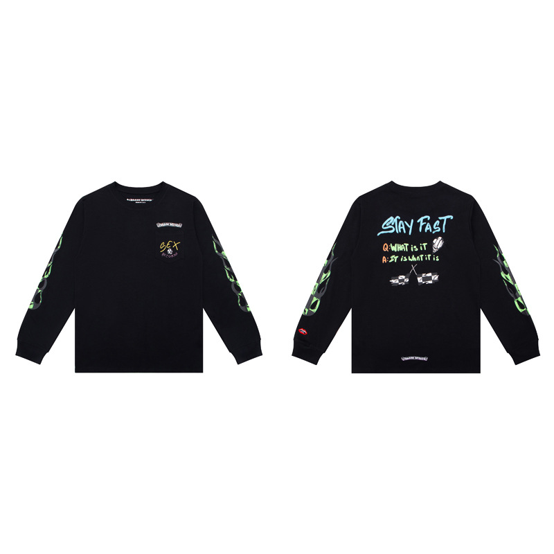 국경 간 트렌디 브랜드 Chrome Heart Chrome Heart 긴팔 티셔츠 순면 남성 및 여성 루즈 스팟 도매스토어 가기