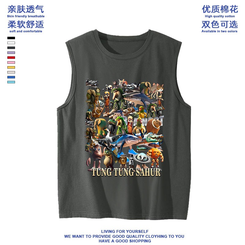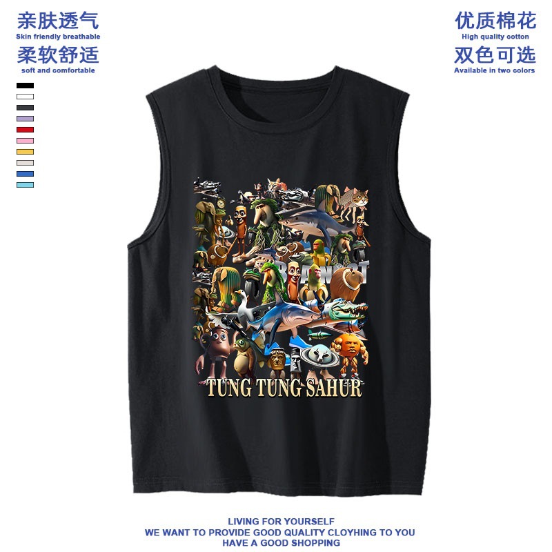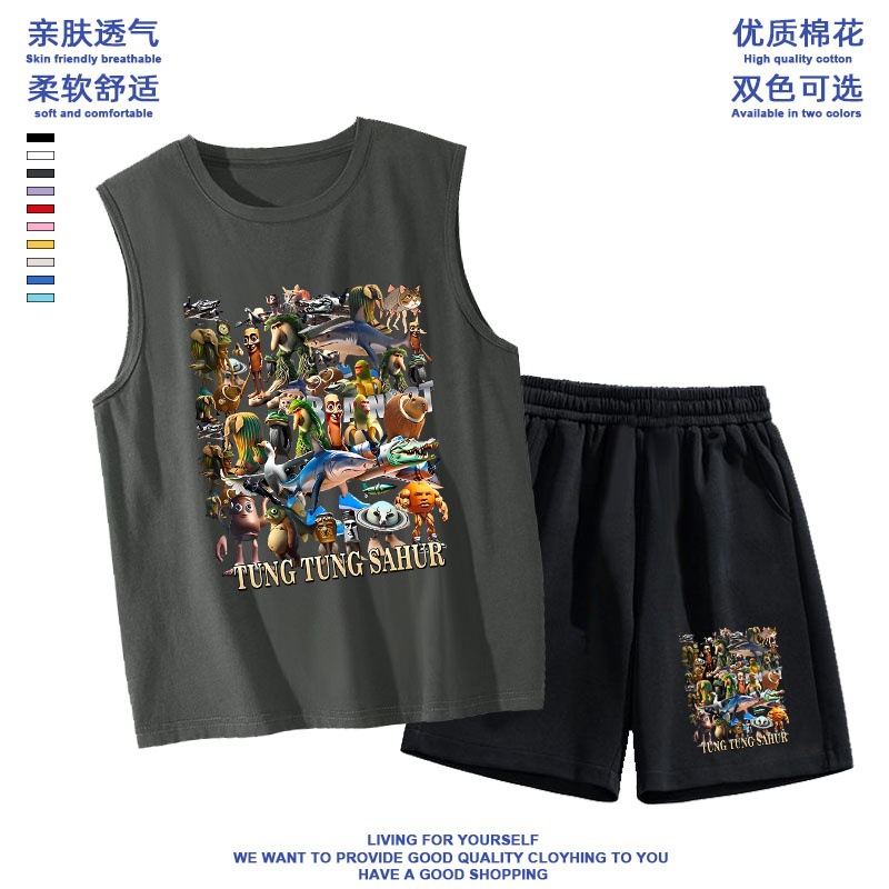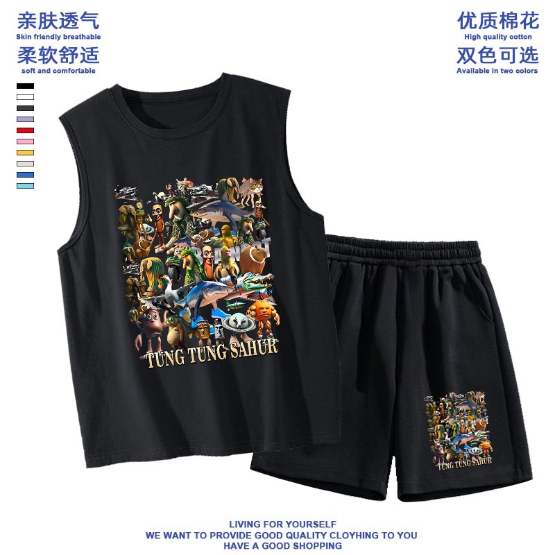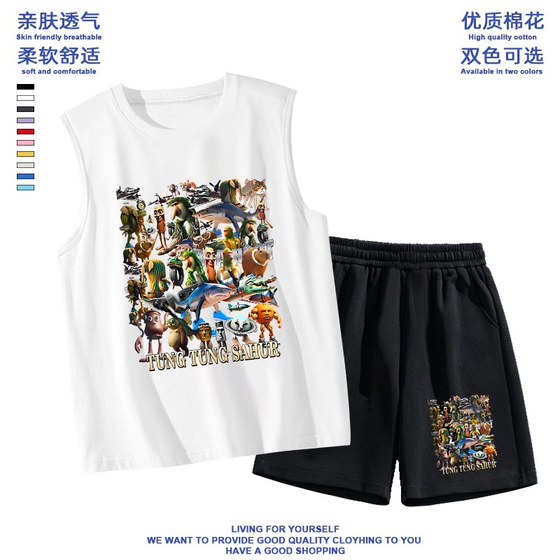 소년 나무 막대 옷 추상 외국 산과 바다 어린이 반팔 티셔츠 여름 조끼 캐주얼 탑 반바지 새로운스토어 가기
