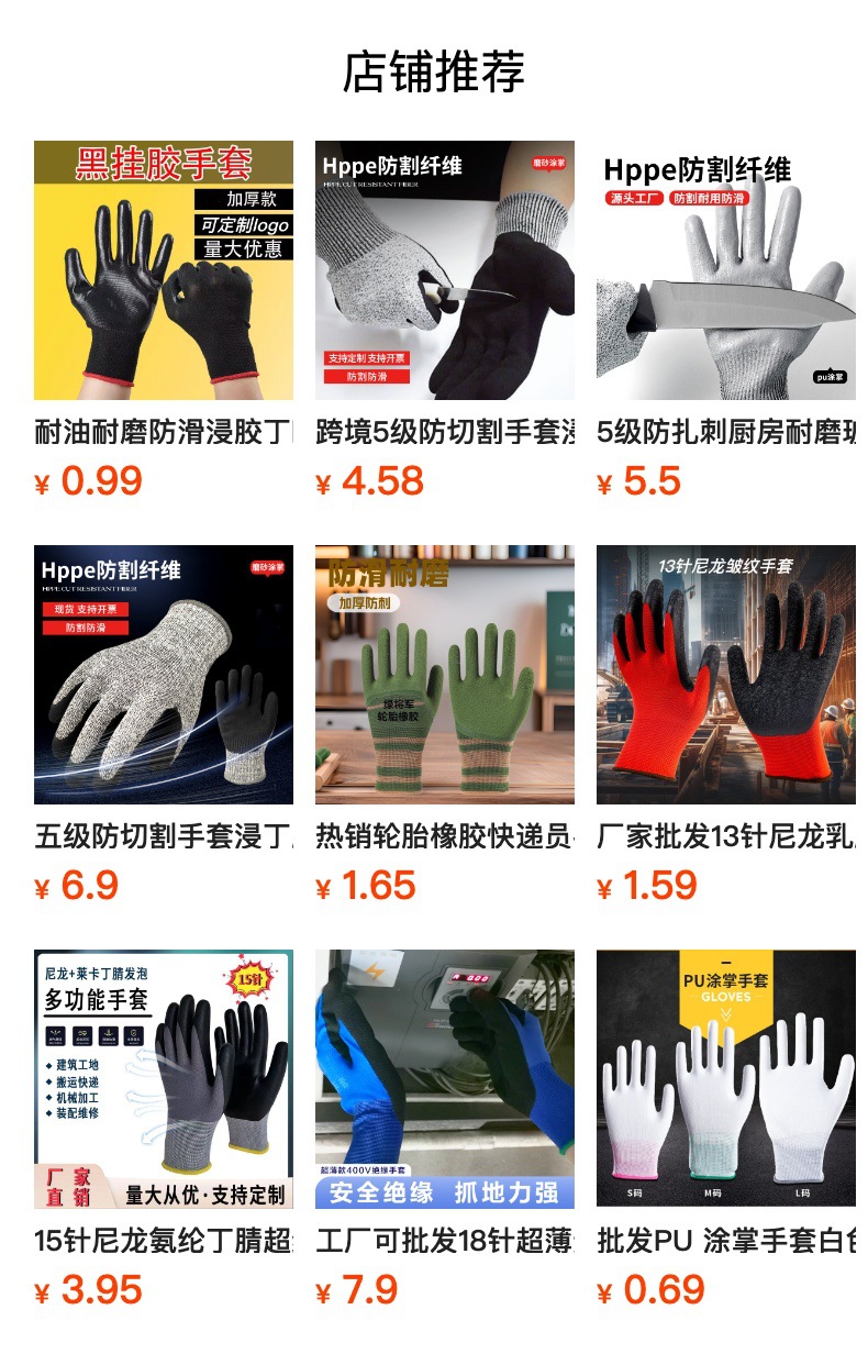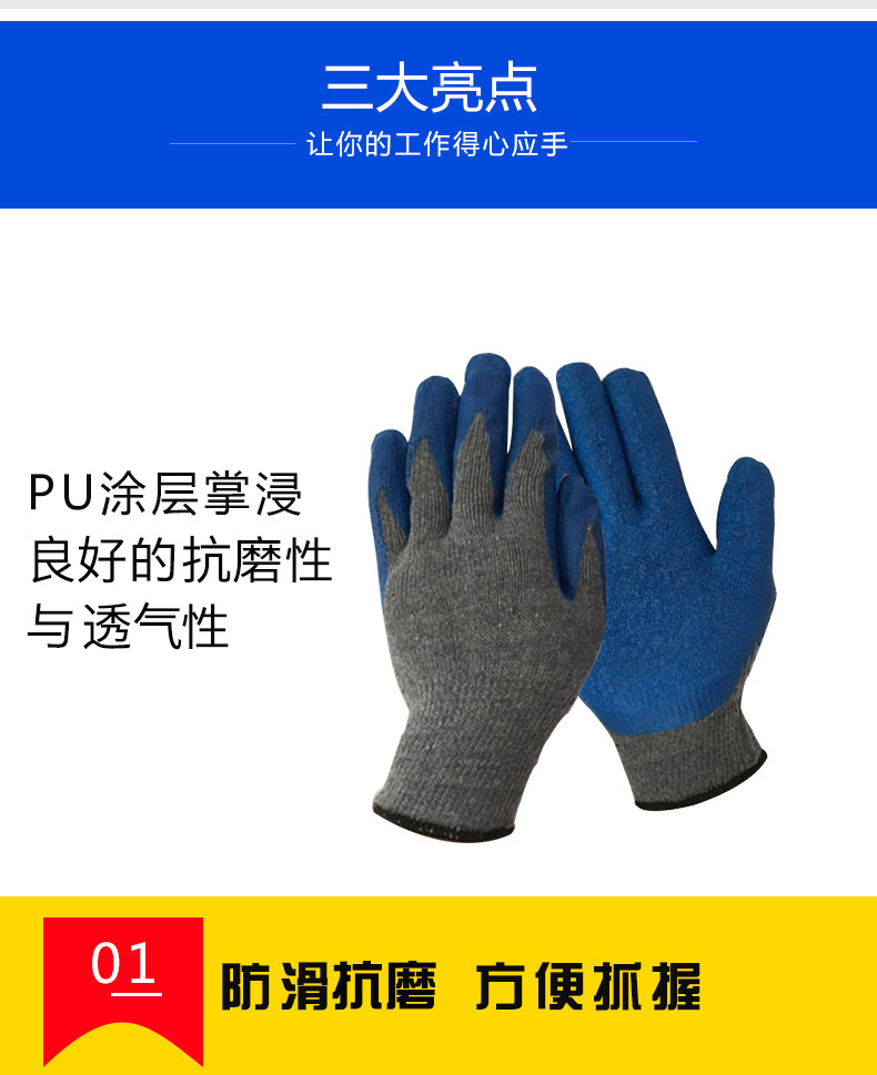 10바늘 면사 노동 보호 장갑, 찌르기 방지, 주름 방지, 미끄럼 방지, 통기성 주름 노동 보호 장갑, 고무 장갑스토어 가기