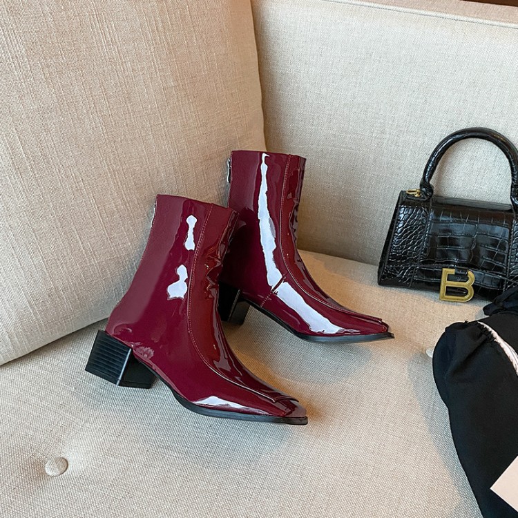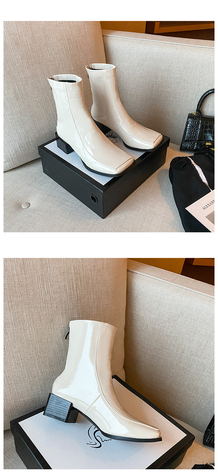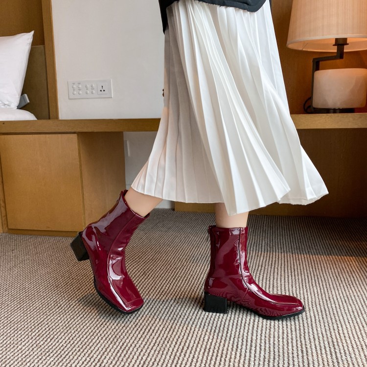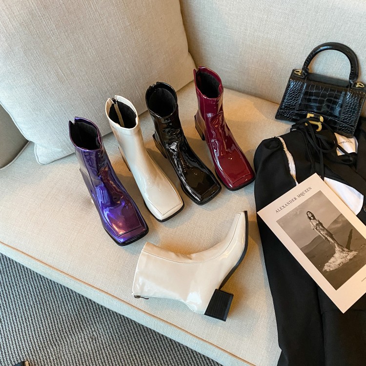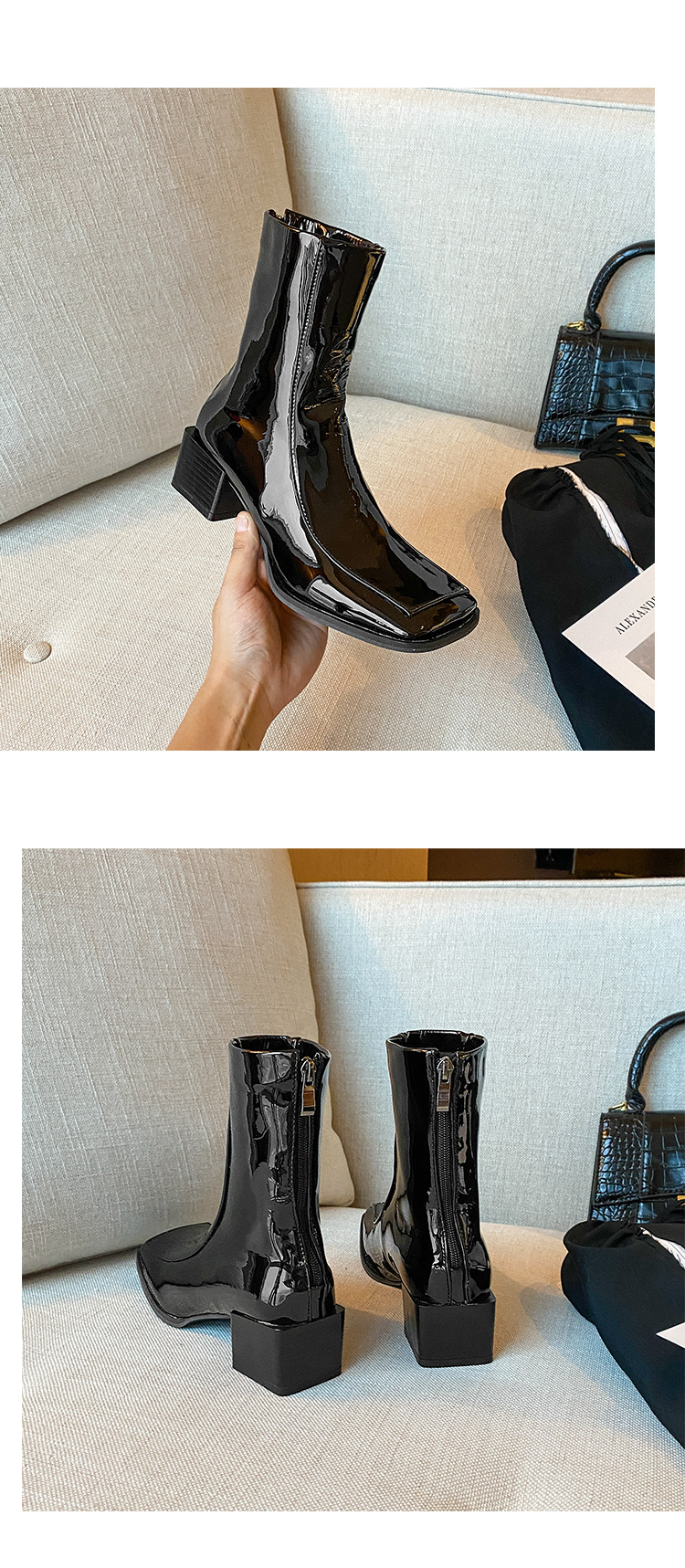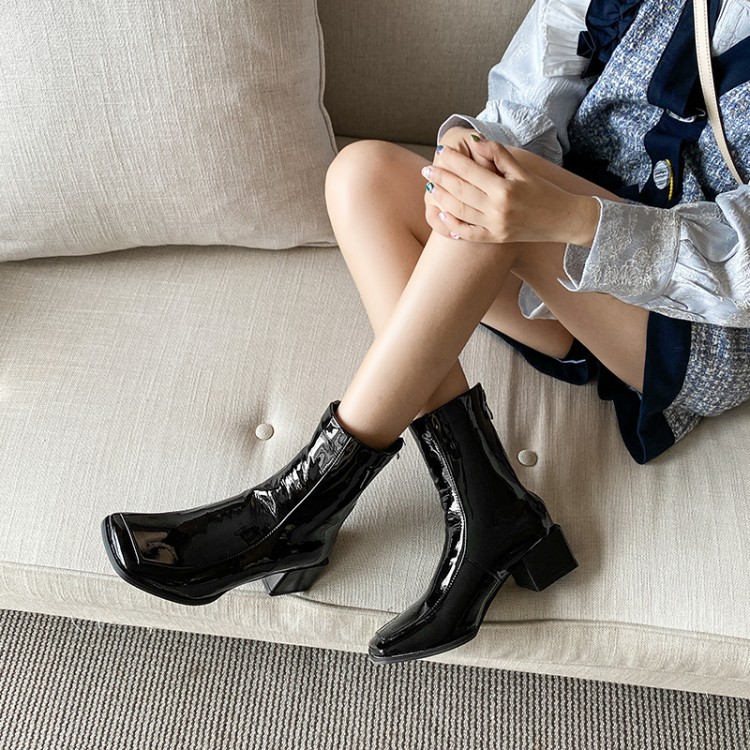 플러스 사이즈 여성 신발 23 가을 겨울 새로운 한국 스타일 짧은 부츠 여성 거울 특허 가죽 스퀘어 토우 두꺼운 굽 마틴 부츠 여성 아마존스토어 가기