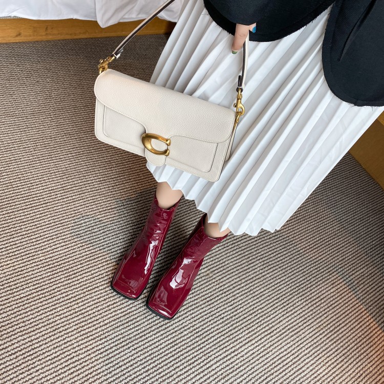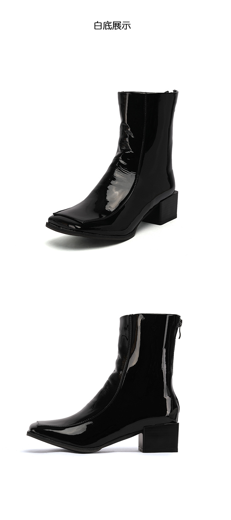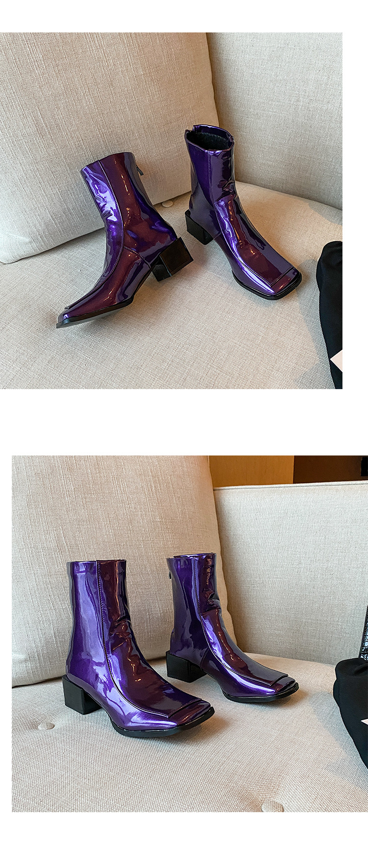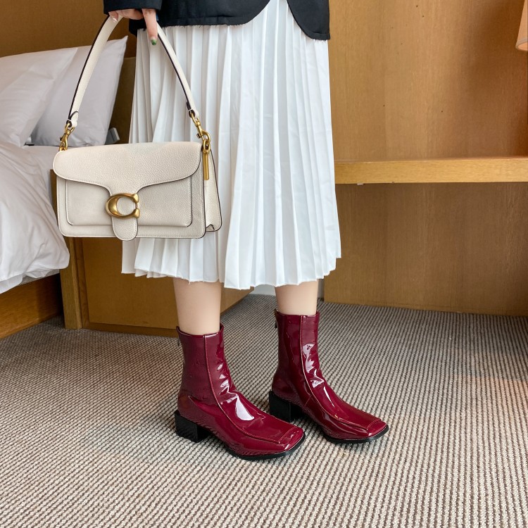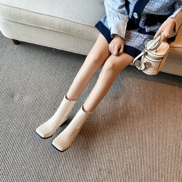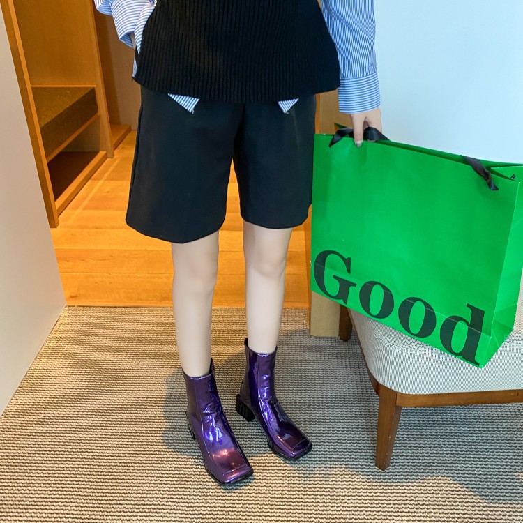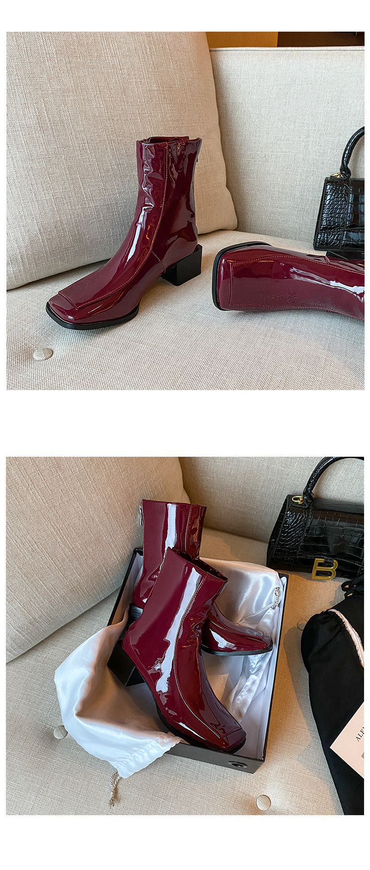 플러스 사이즈 여성 신발 23 가을 겨울 새로운 한국 스타일 짧은 부츠 여성 거울 특허 가죽 스퀘어 토우 두꺼운 굽 마틴 부츠 여성 아마존스토어 가기