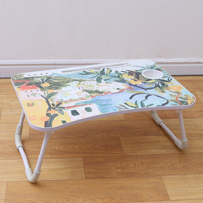 Type-c 인터페이스가있는 침대 컴퓨터 테이블 침대 작은 테이블 게으른 책상 침실 접이식 테이블 학생 학습