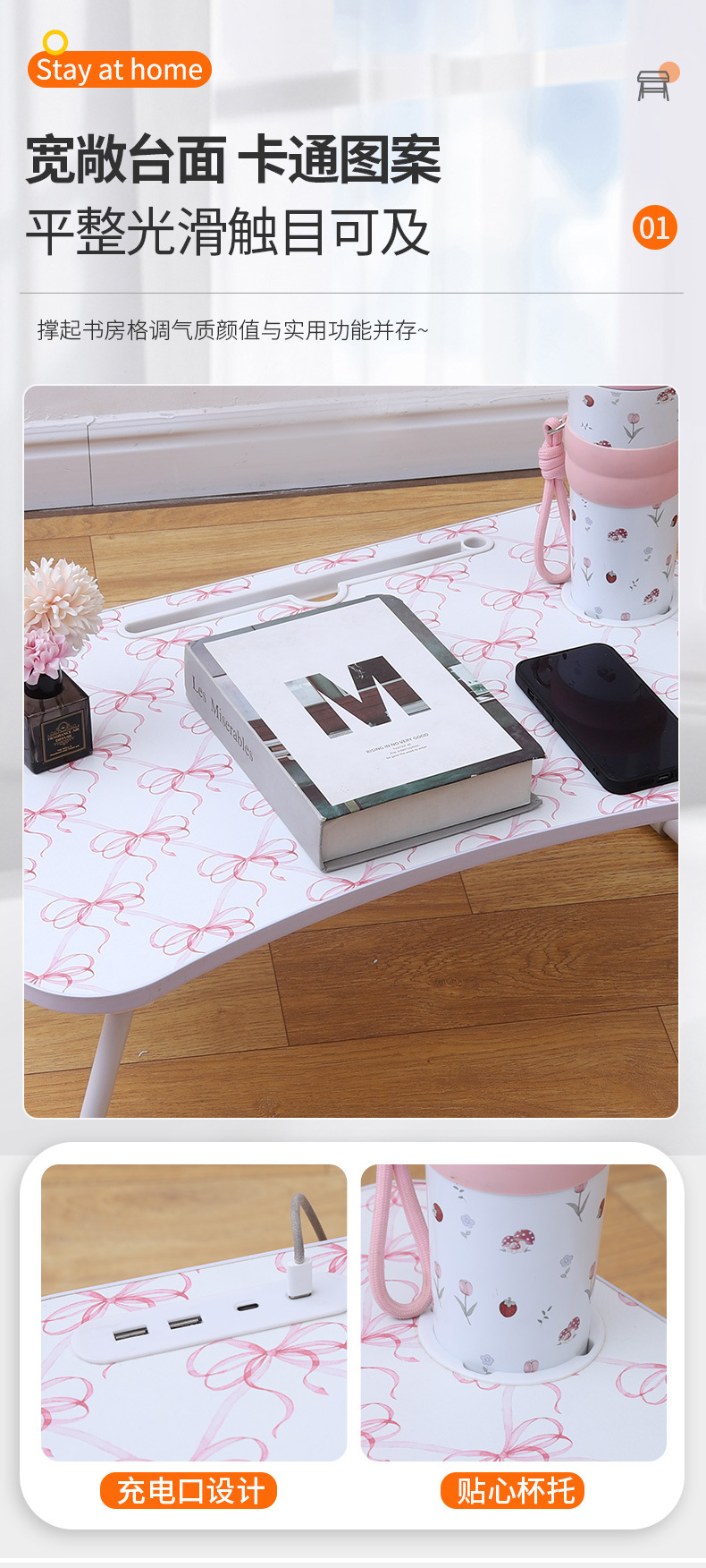 Type-c 인터페이스가있는 침대 컴퓨터 테이블 침대 작은 테이블 게으른 책상 침실 접이식 테이블 학생 학습스토어 가기