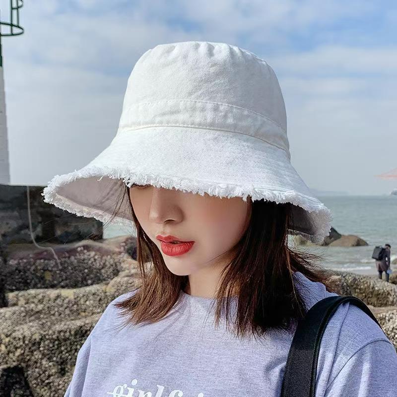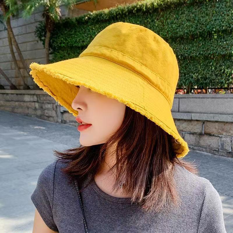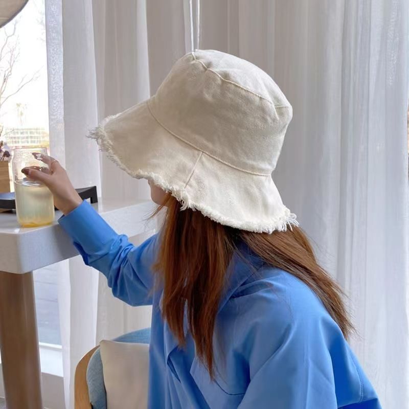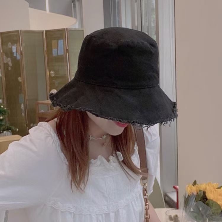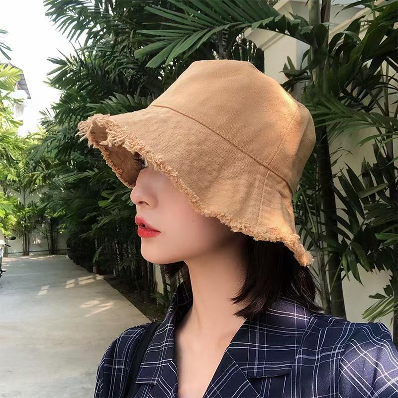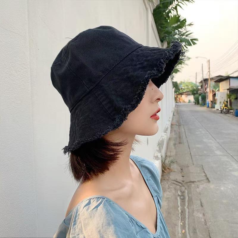 모자 여성 여름 한국 스타일 트렌디 일본 스타일 모피 가장자리 어부 모자 검은 학생 간단한 가장자리 태양 보호 분지 모자 태양 모자스토어 가기
