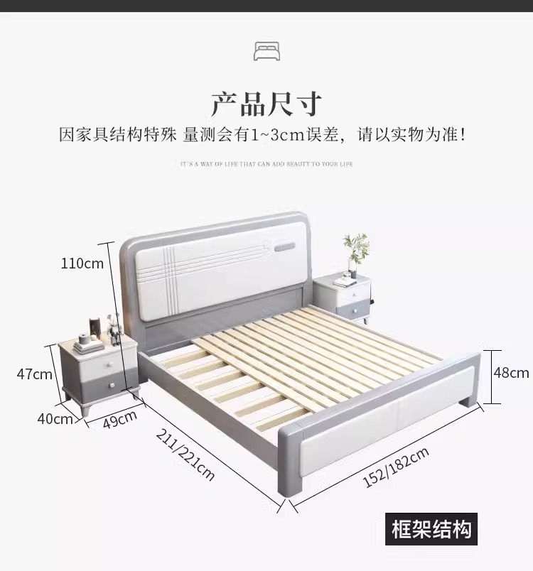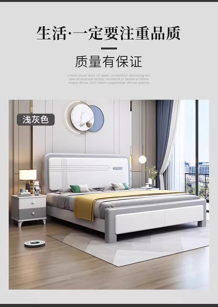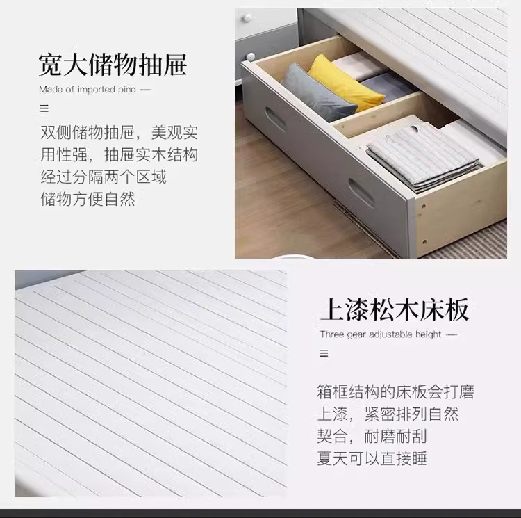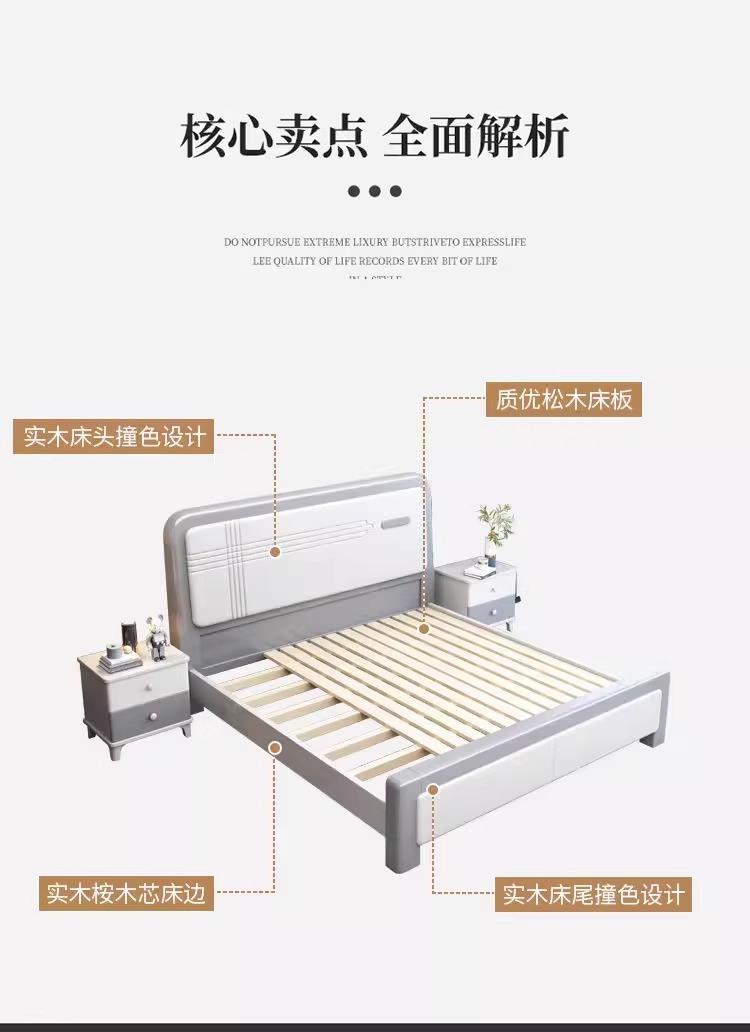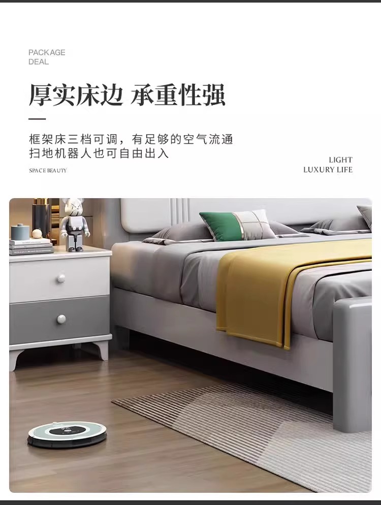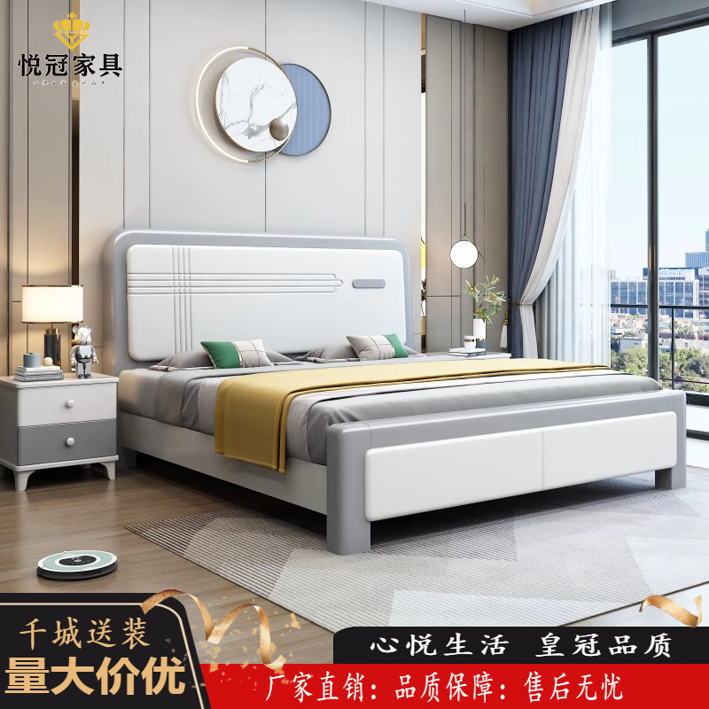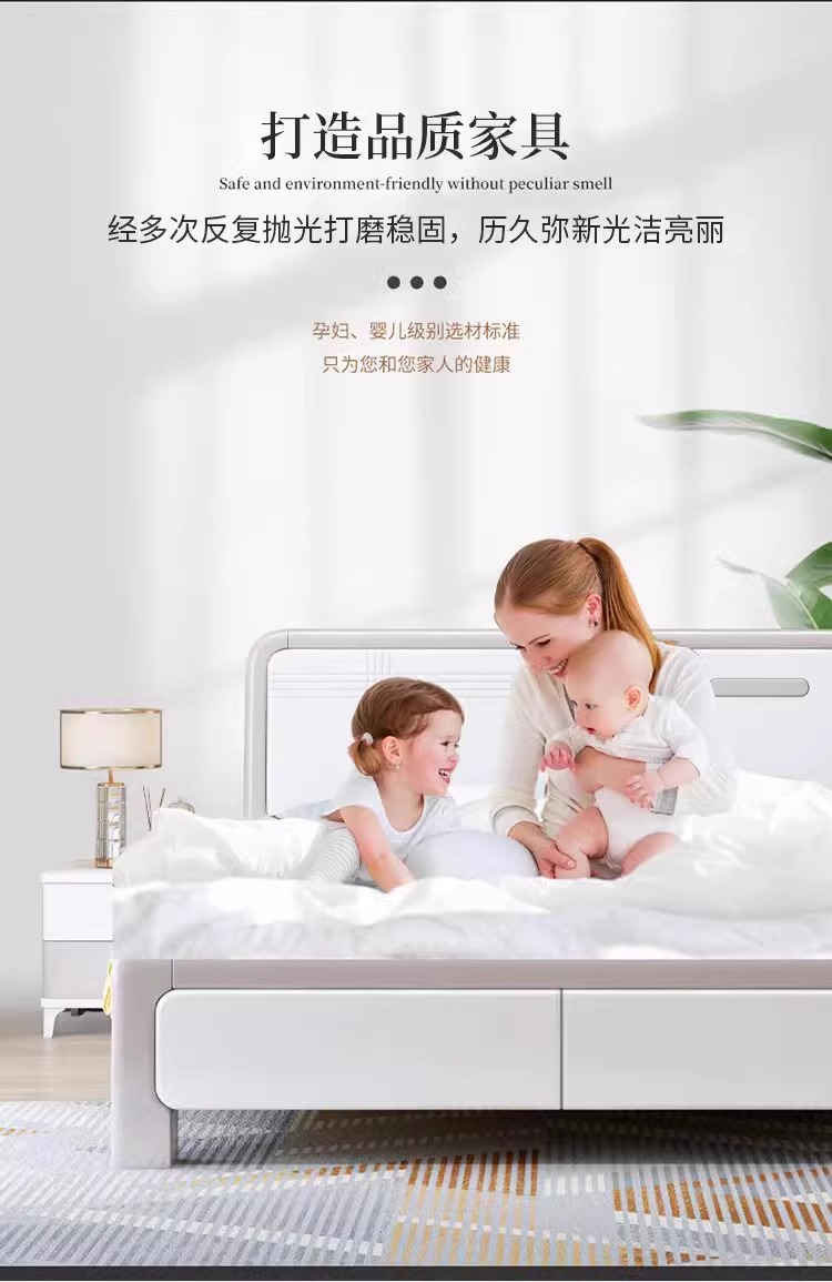 북유럽 경제적인 단단한 나무 침대 흰색 현대적인 단순 1.8m 마스터 침실 더블 침대 1.5 라이트 럭셔리 모 빈 보관 침대스토어 가기