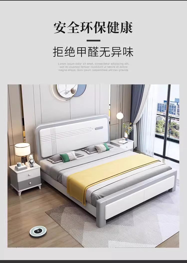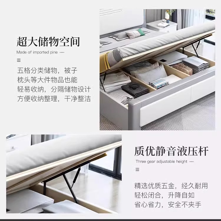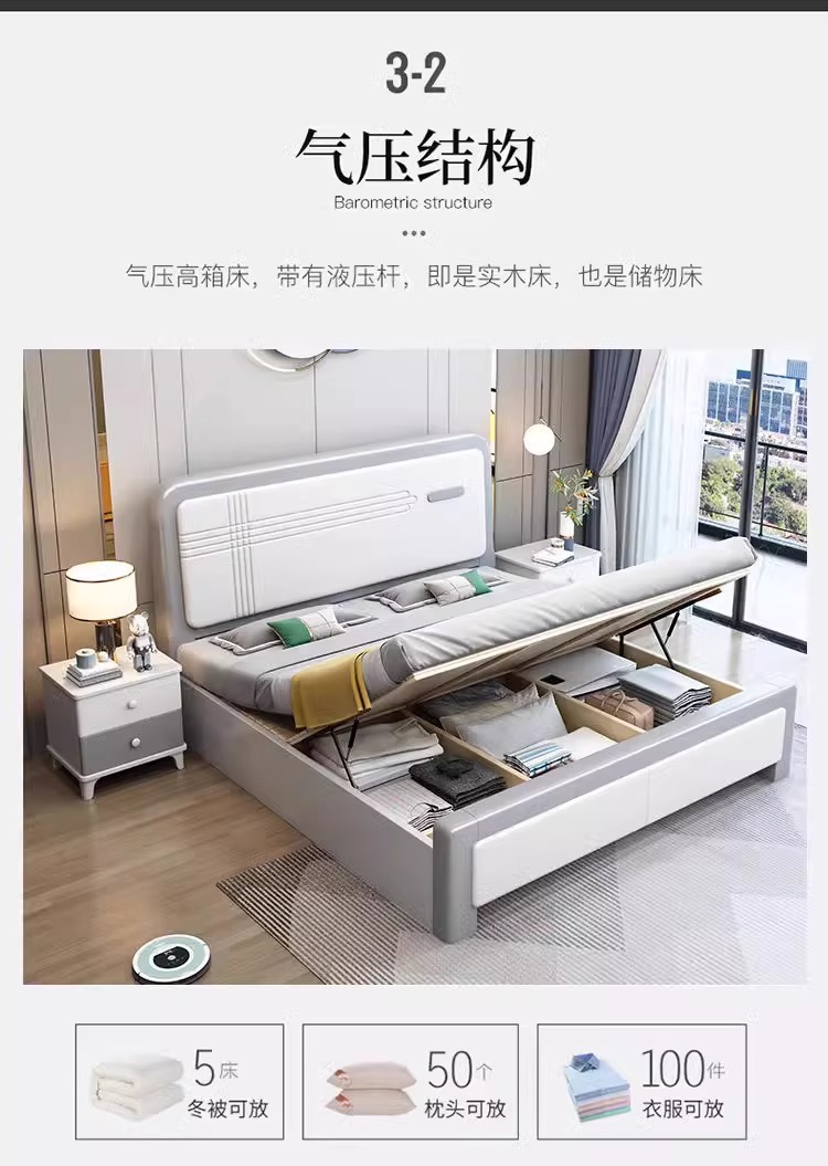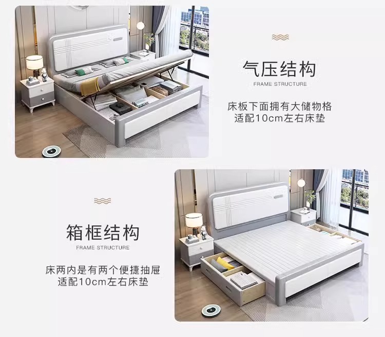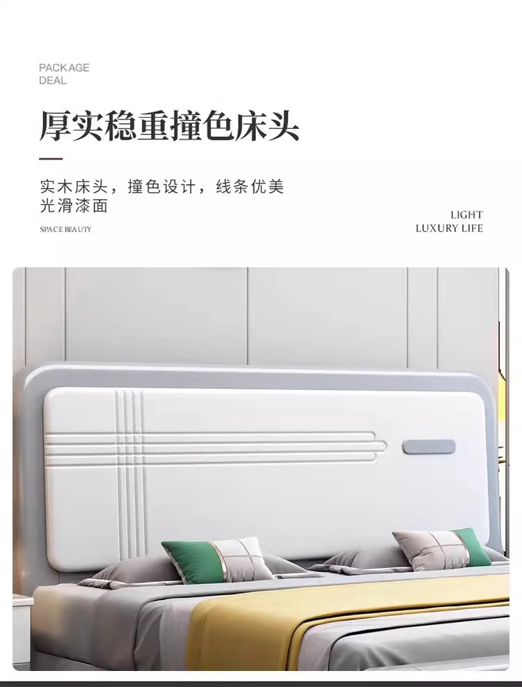 북유럽 경제적인 단단한 나무 침대 흰색 현대적인 단순 1.8m 마스터 침실 더블 침대 1.5 라이트 럭셔리 모 빈 보관 침대