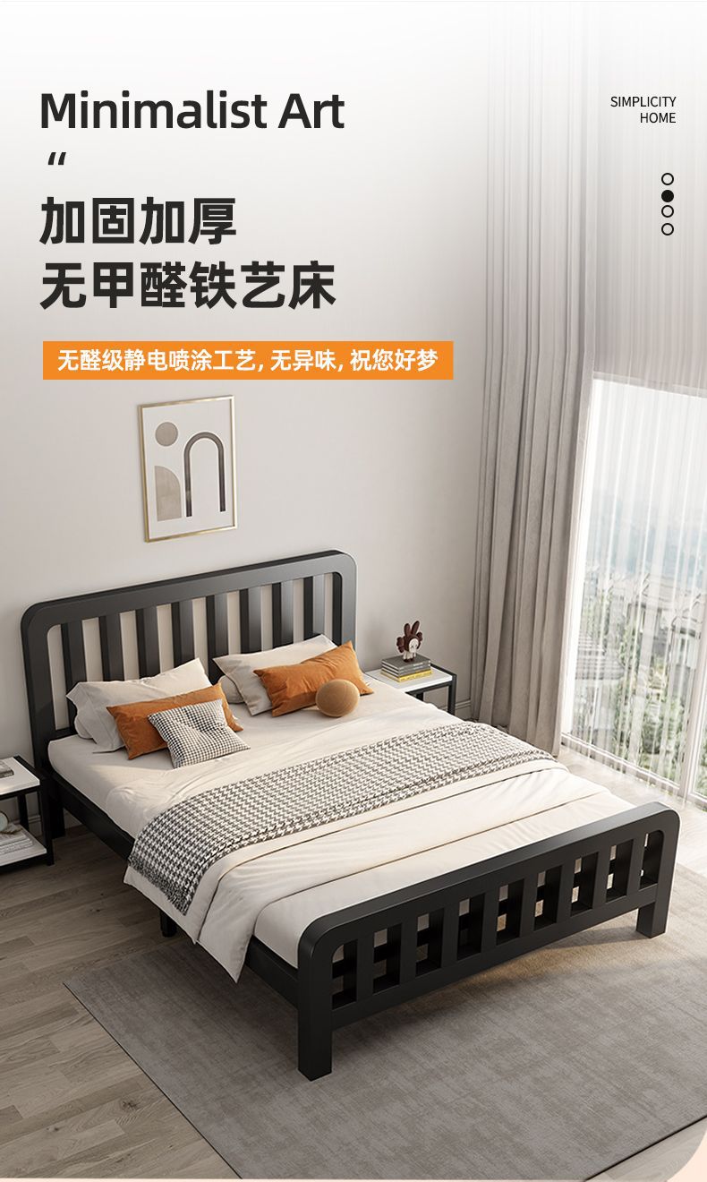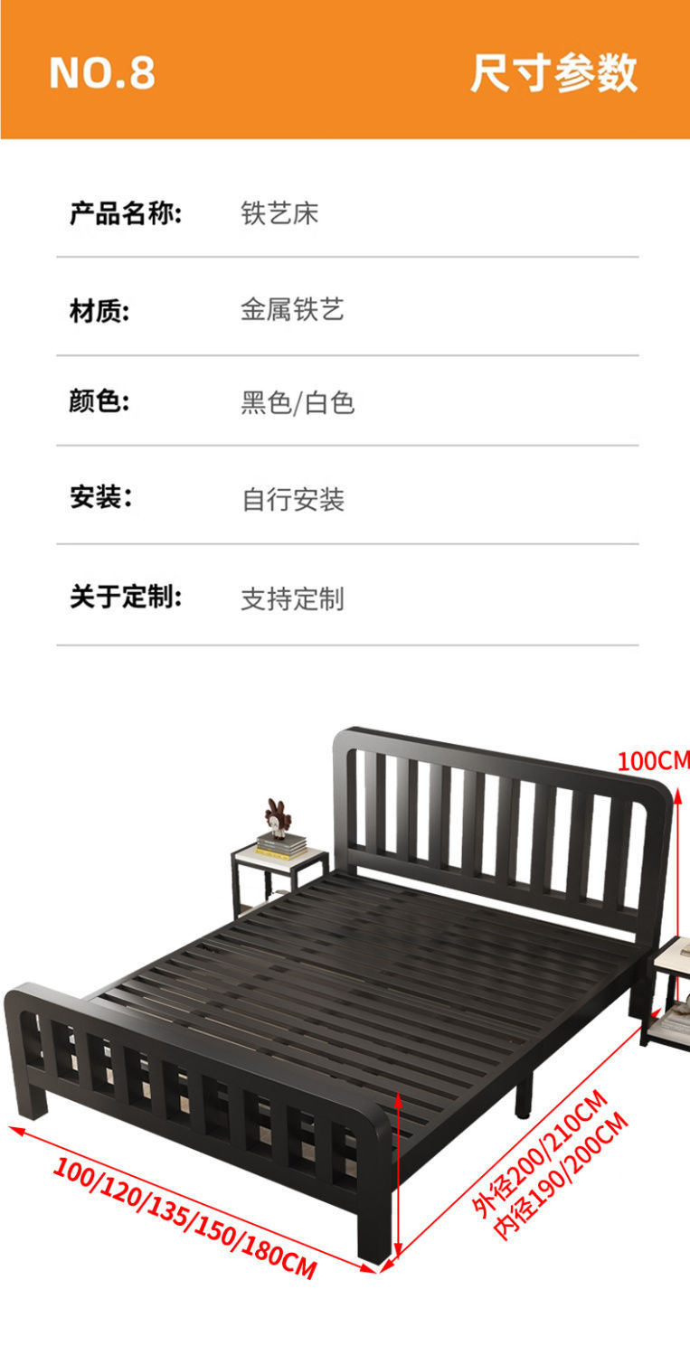북유럽 스타일의 현대적인 간단한 철제 침대 더블 홈 임대 학생 경제적 인 강화 싱글 침대 이상한 소리 없음스토어 가기