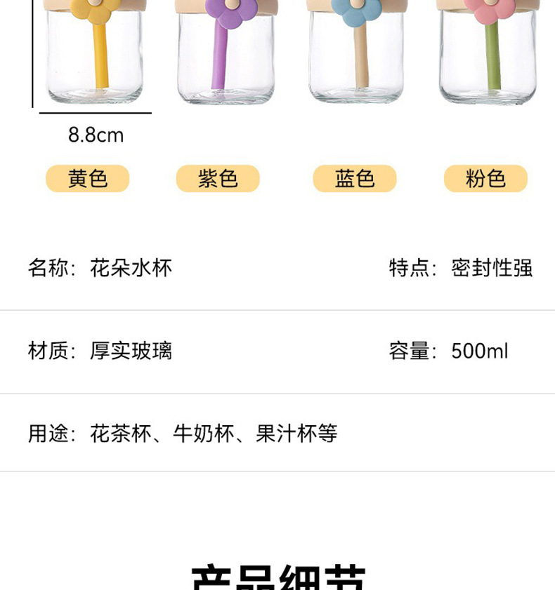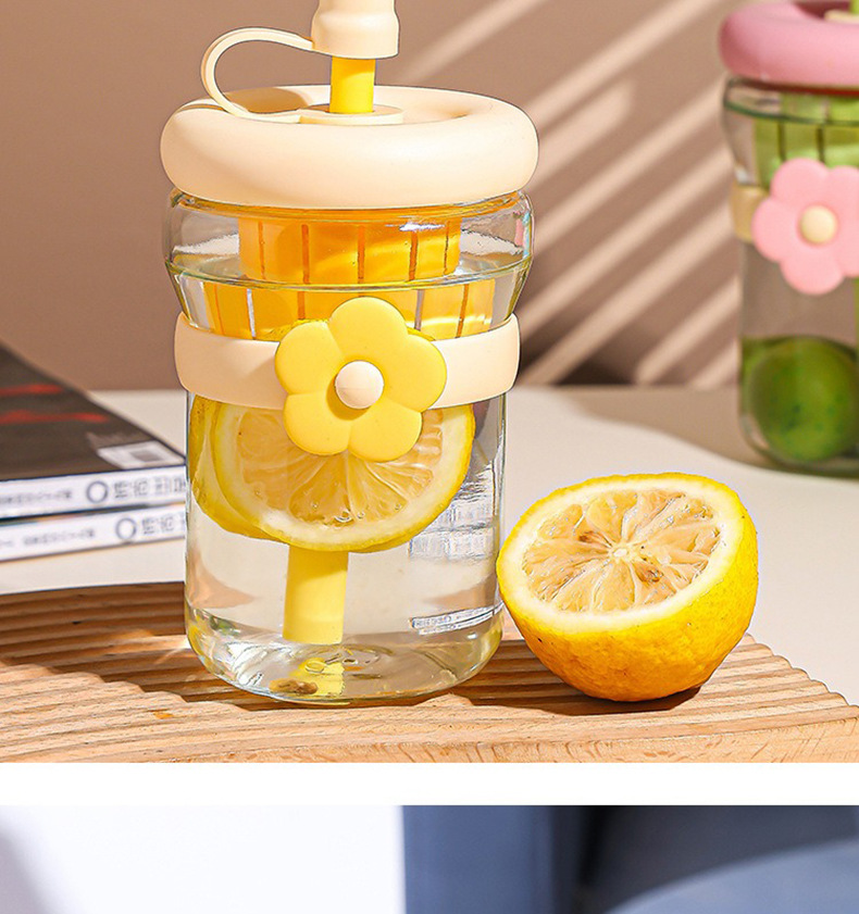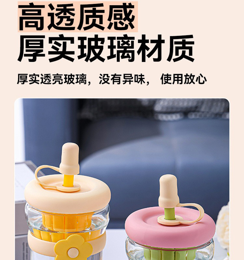 유리 빨대컵, 찻잔, 고급스러운 콜드브루 꽃차컵, 인스 스타일 심플 휴대용 차 분리컵