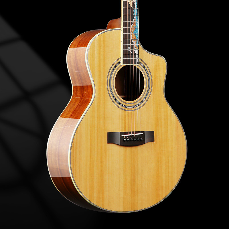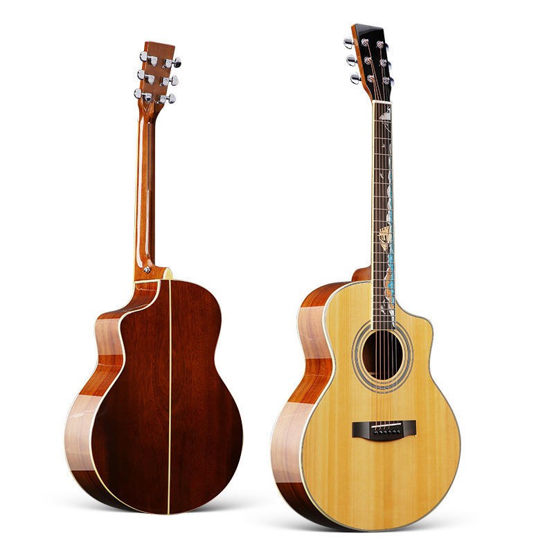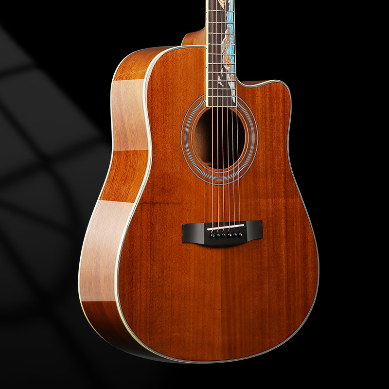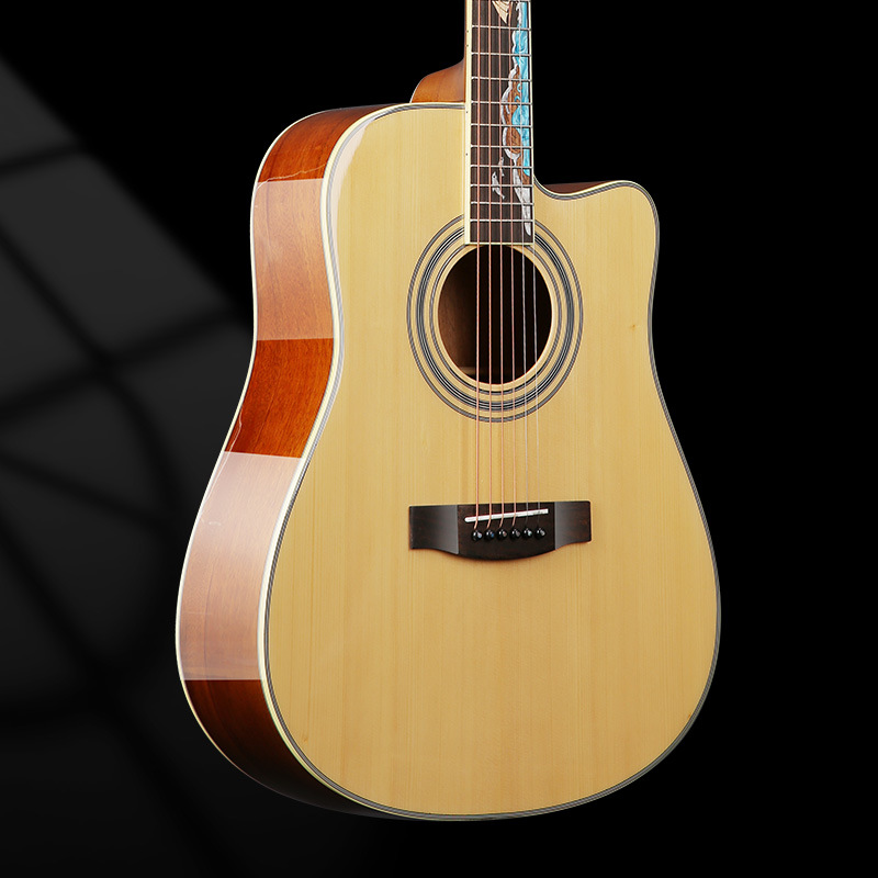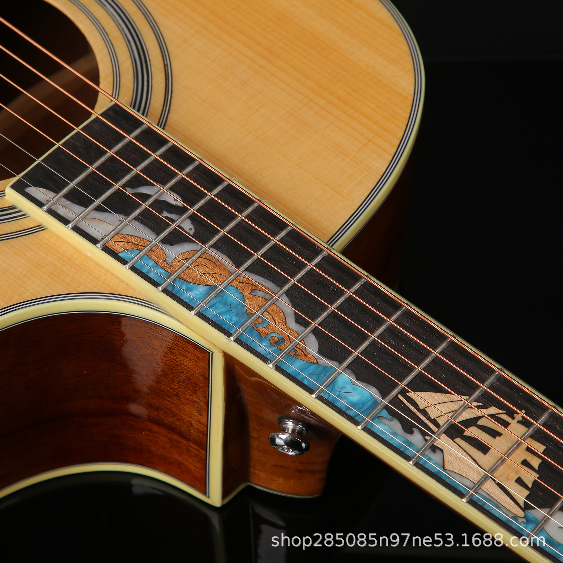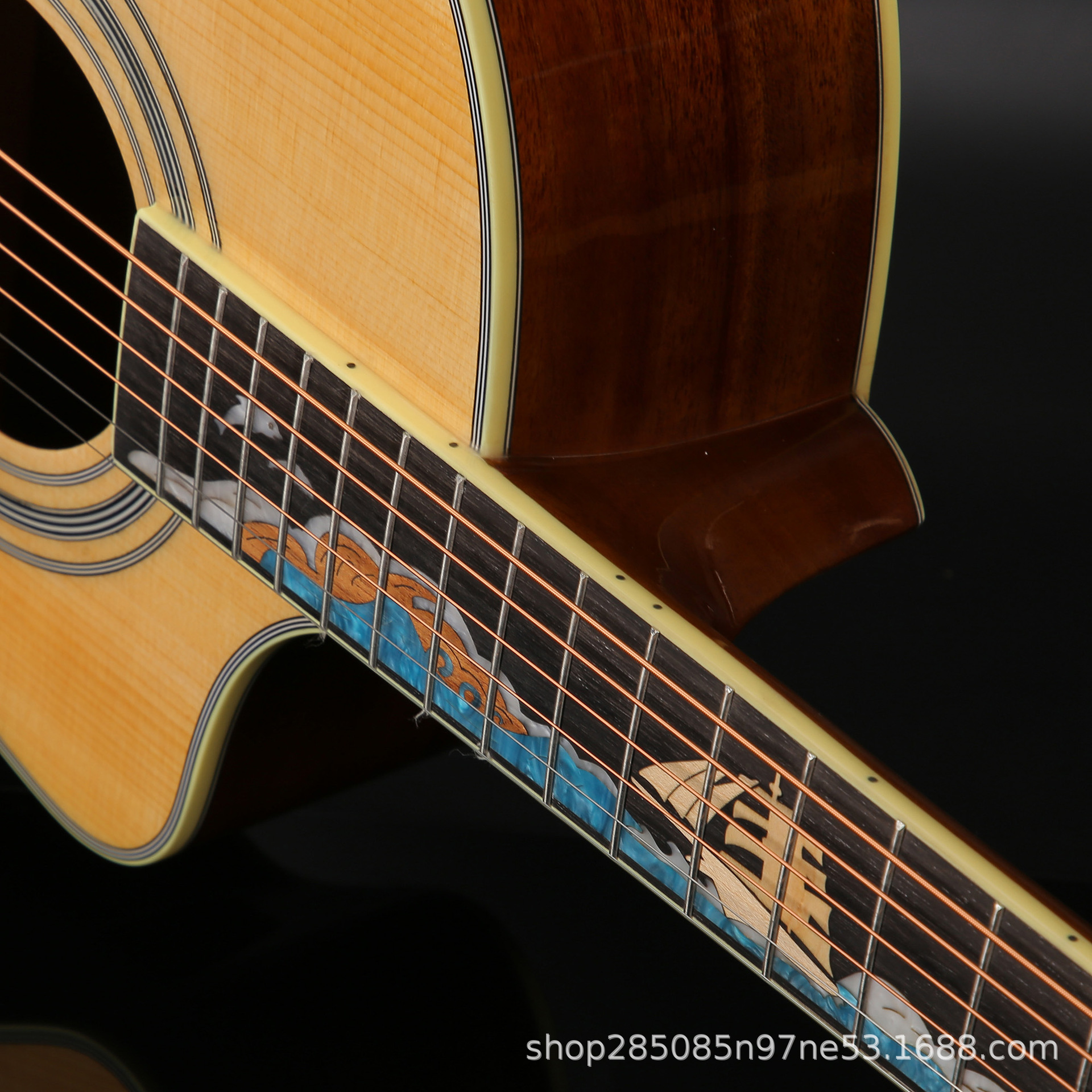 올솔리드 기타 41inch 40inch 스프루스 마호가니 올솔리드 플레이트 포크 기타 지판에 해바라기와 돛배 조각 디자인