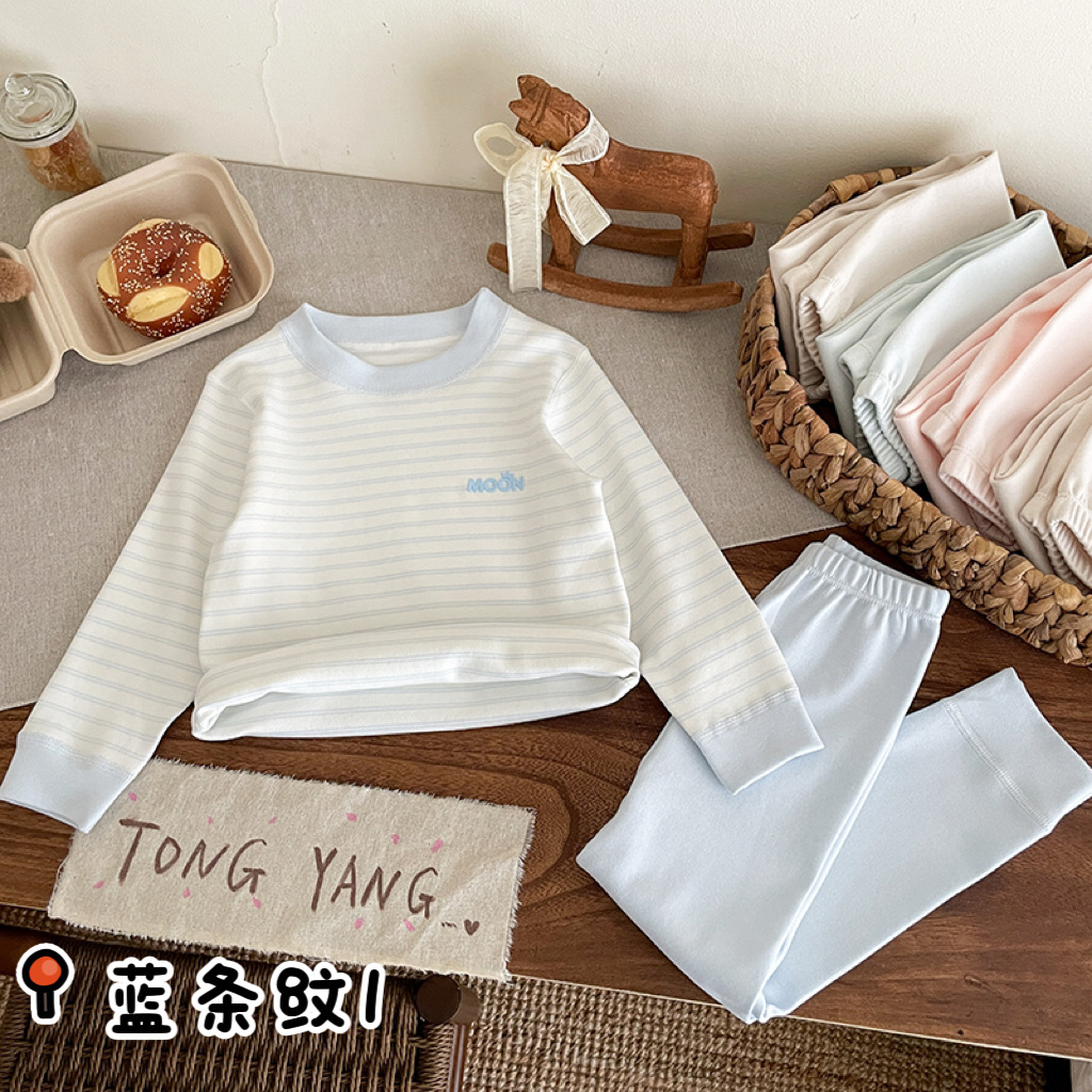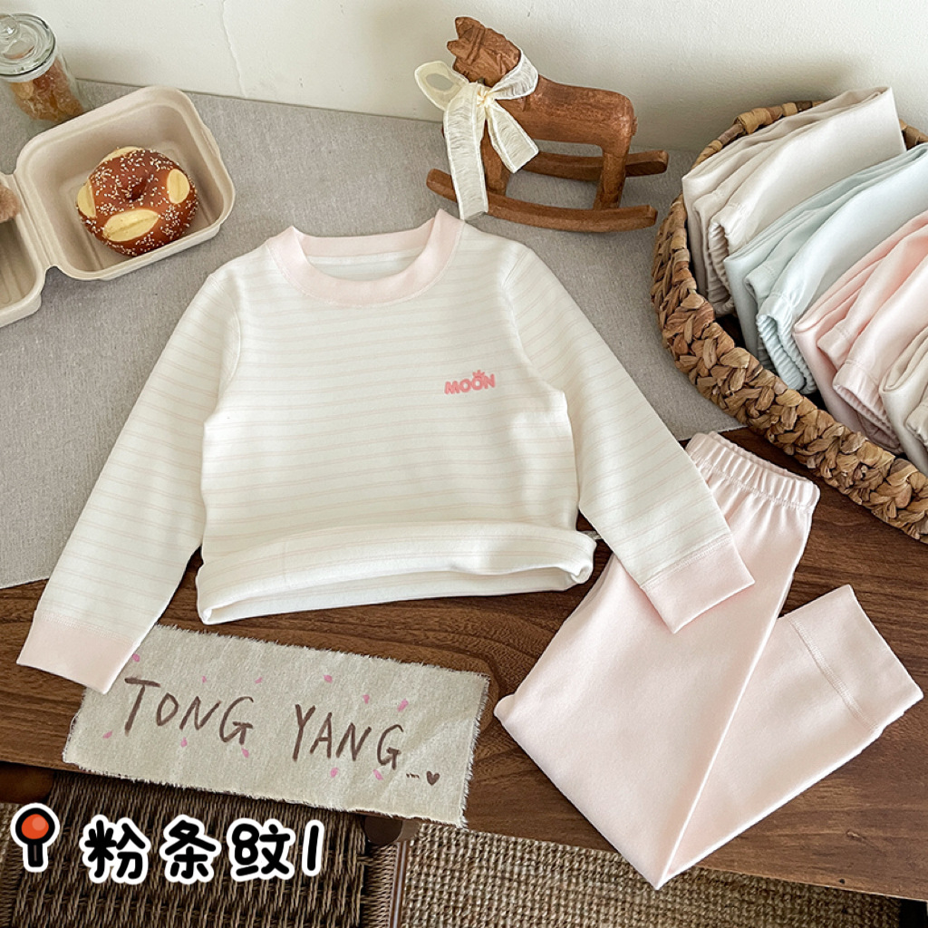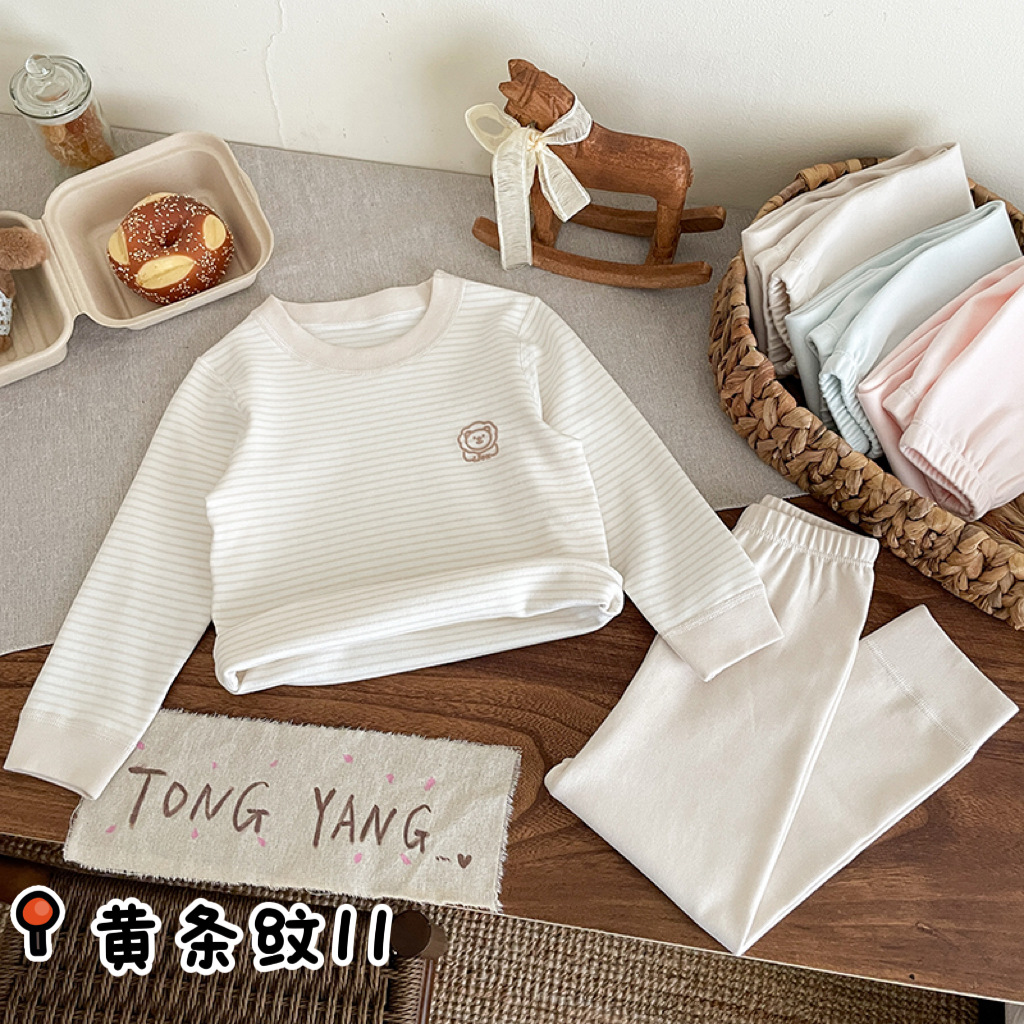 아동 가을 옷과 긴 바지, 순면, 카테고리 A, 뼈없는 부드러운 벨벳 스탠드, 가을 겨울 소년 소녀 잠옷, 가정복, 속옷 세트