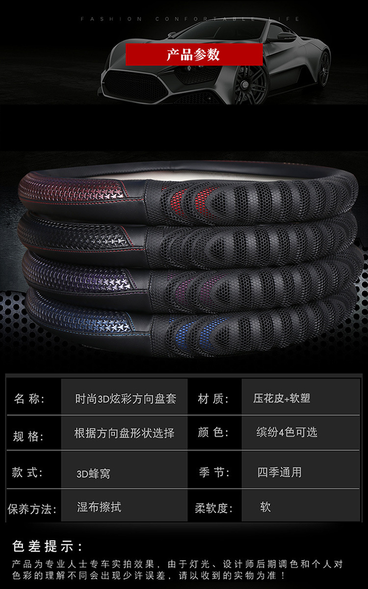 3D 벌집 디자인 스티어링 휠 커버는 수천 가지 모델에 적합하며 사계절 특별 미끄럼 방지 통기성 패션 핸들 커버 도매