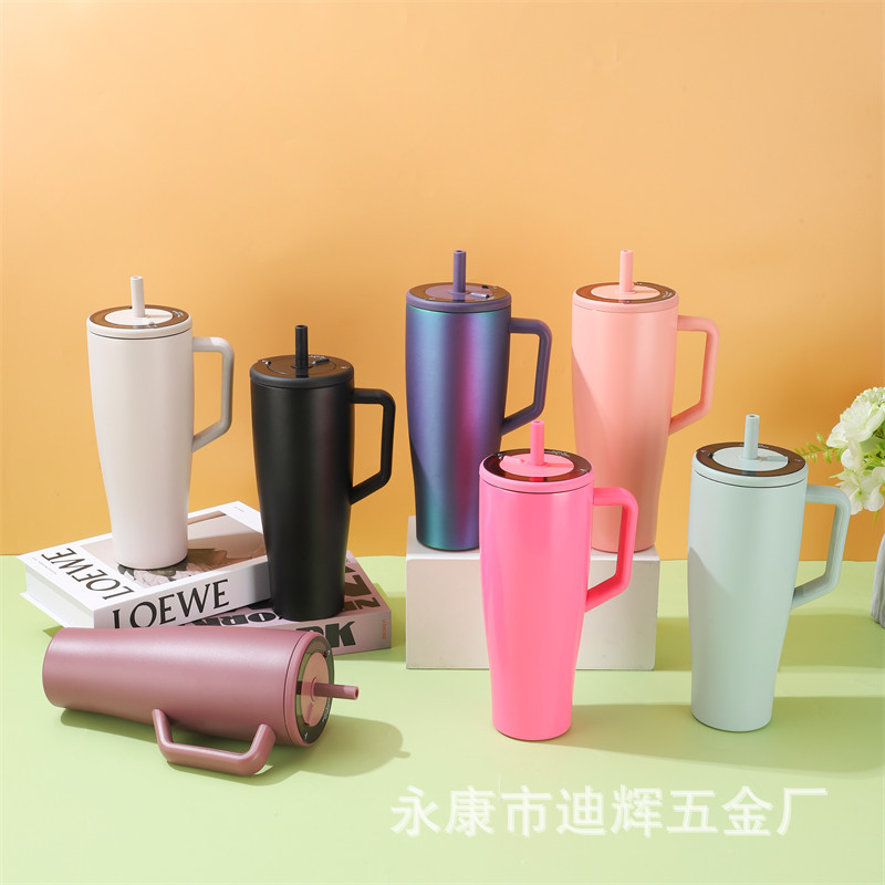 국경 간 새로운 40oz 핸들 자동차 컵 스테인레스 스틸 밀짚 절연 컵 대용량 야외 휴대용 얼음 컵