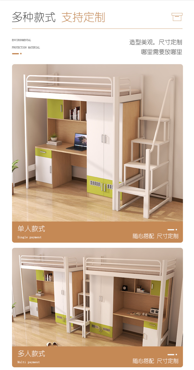 대학생 기숙사 이층침대 학교 단위 이중 연결형 3인용 상하침대 책상 포함 더블침대 이층침대