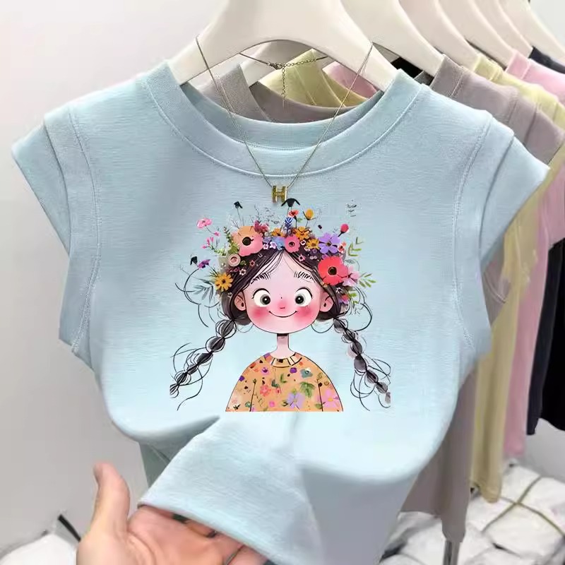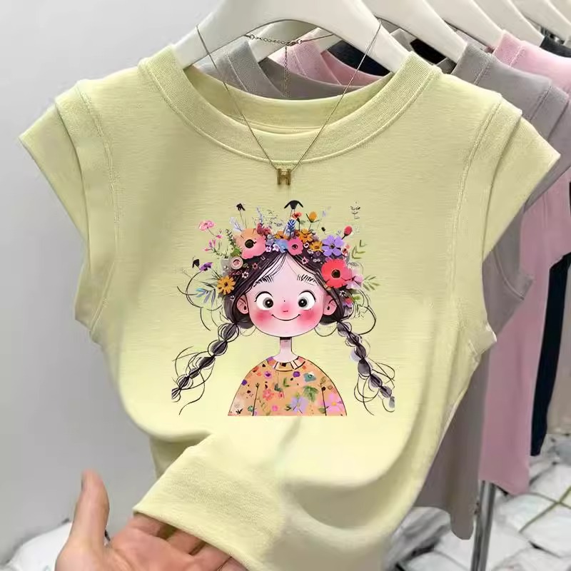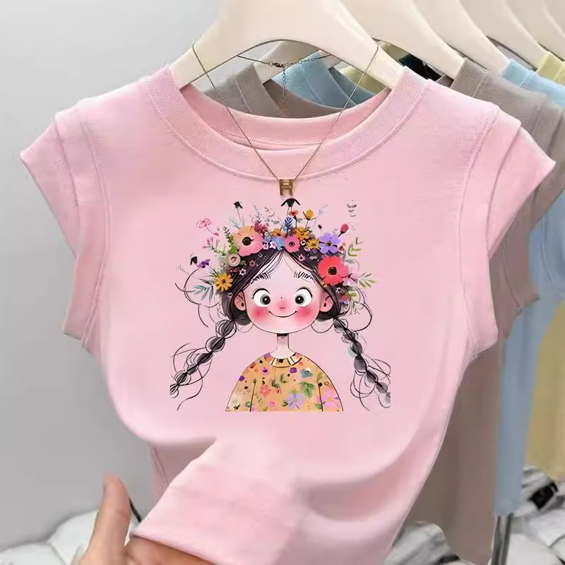 여아 핑크 플라잉 슬리브 탑 여름 새 스타일 여아 및 아동 티셔츠 반팔 스타일 중대형 아동 민소매 조끼 유행