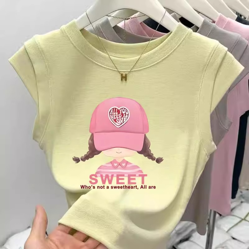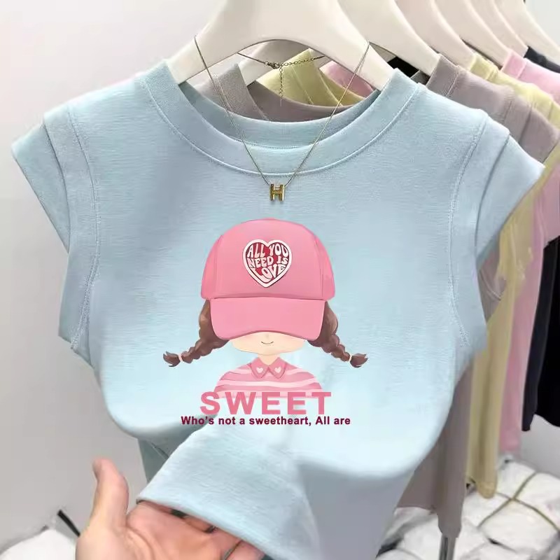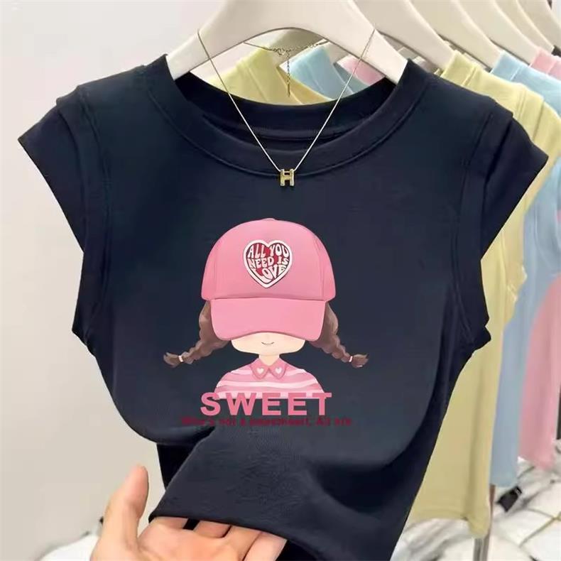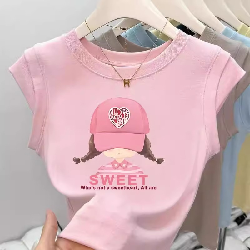 여아 핑크 플라잉 슬리브 탑 여름 새 스타일 여아 및 아동 티셔츠 반팔 스타일 중대형 아동 민소매 조끼 유행스토어 가기