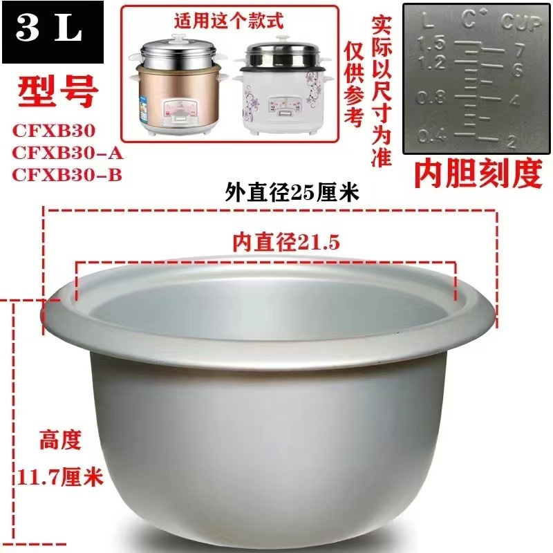 老式内胆通用型电饭煲家用铝胆2L3L5L6L家用无涂层不粘内胆配件