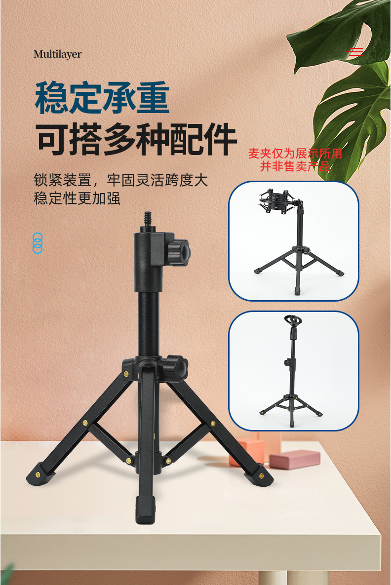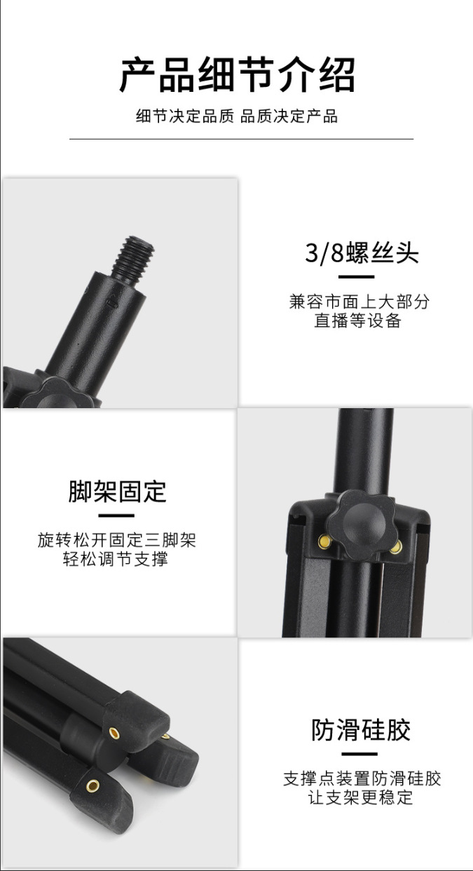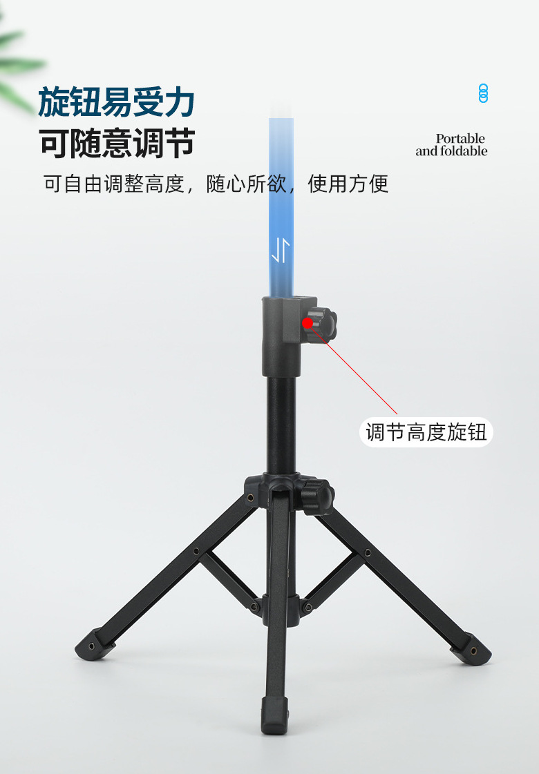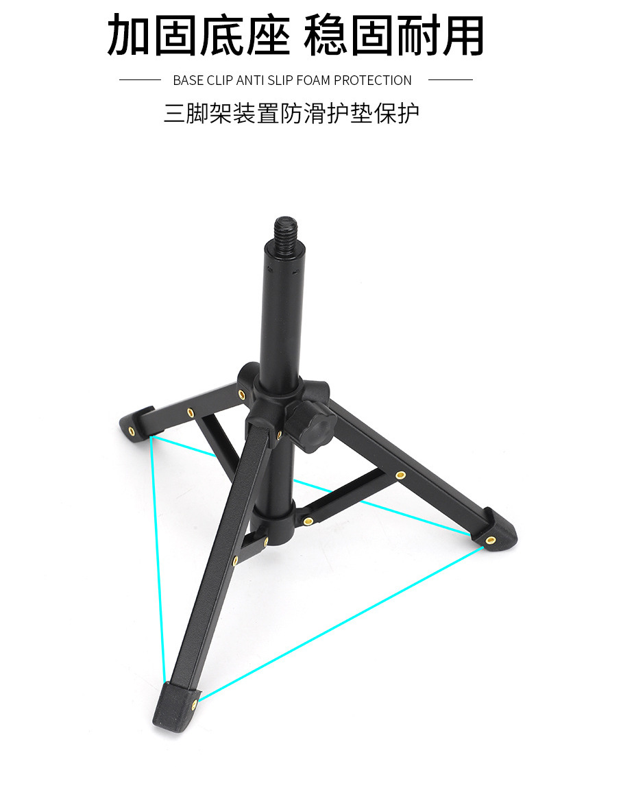 휴대 전화 라이브 방송 마이크 스탠드 데스크탑 범용 접이식 텔레스코픽 휴대용 삼각대 금속 스탠드