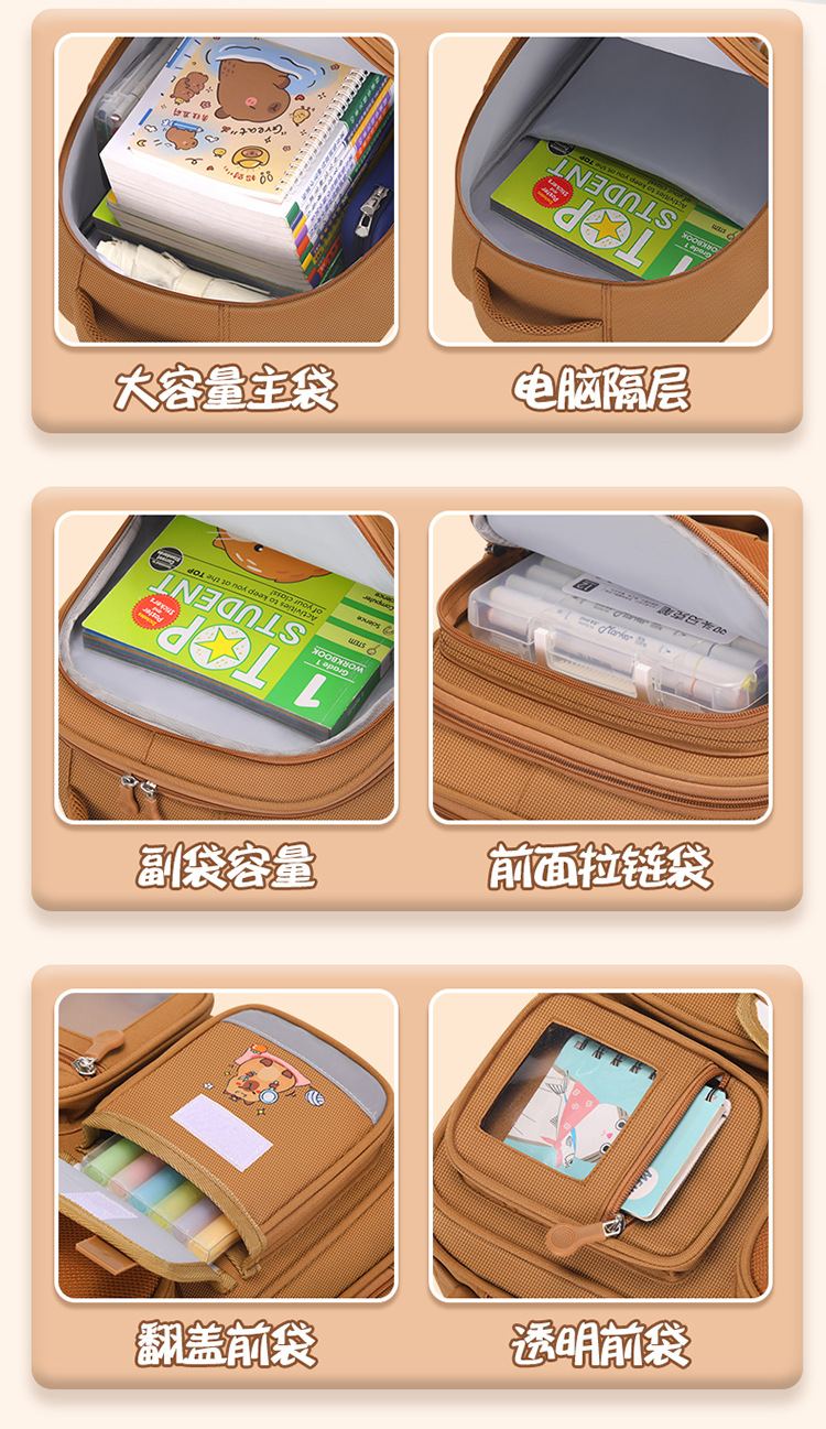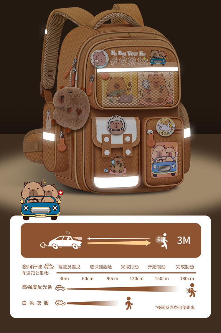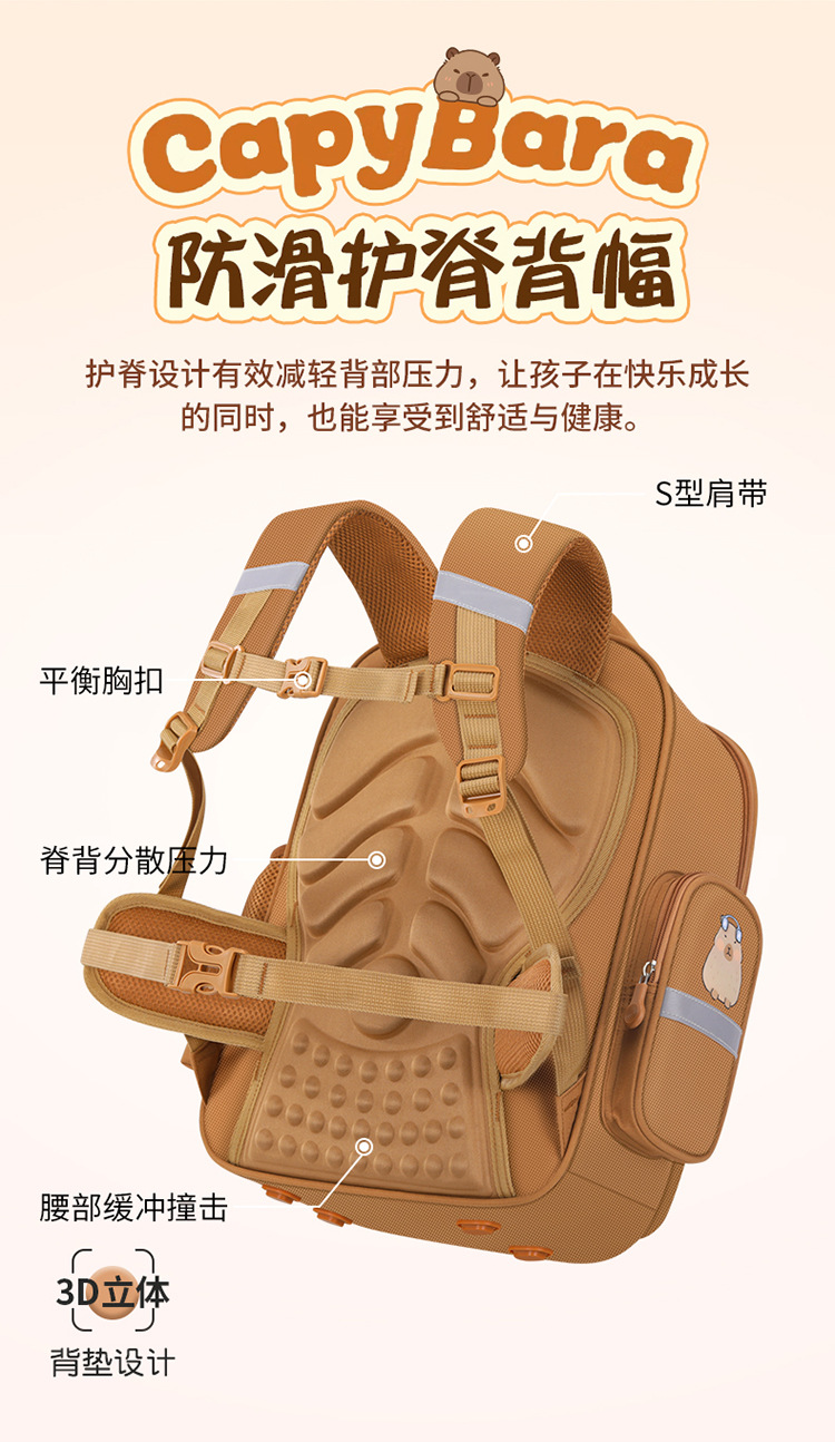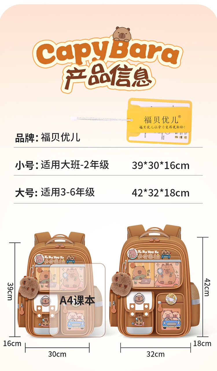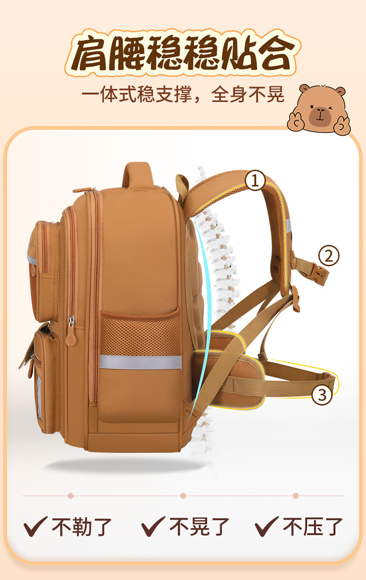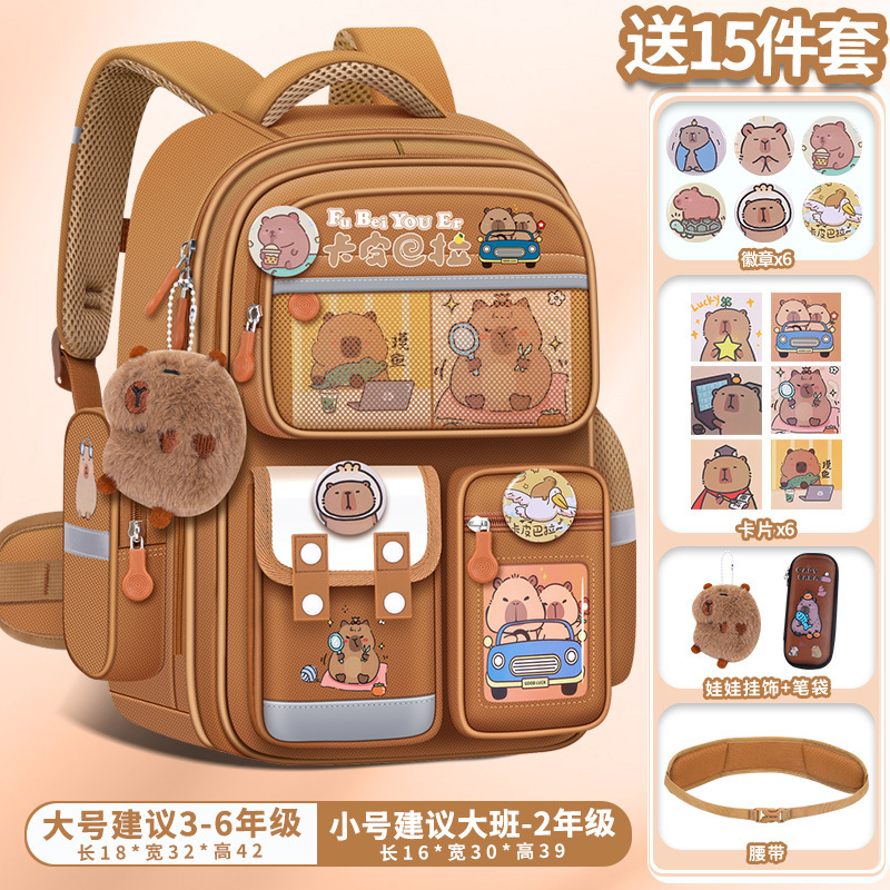 Kapibala 초등학교 가방 남성과 여성 어린이 1, 3, 6 학년 부담 감소 척추 보호 대용량 배낭