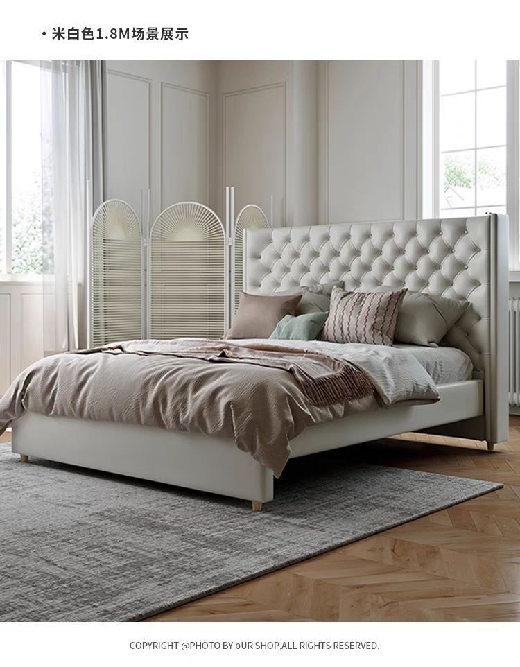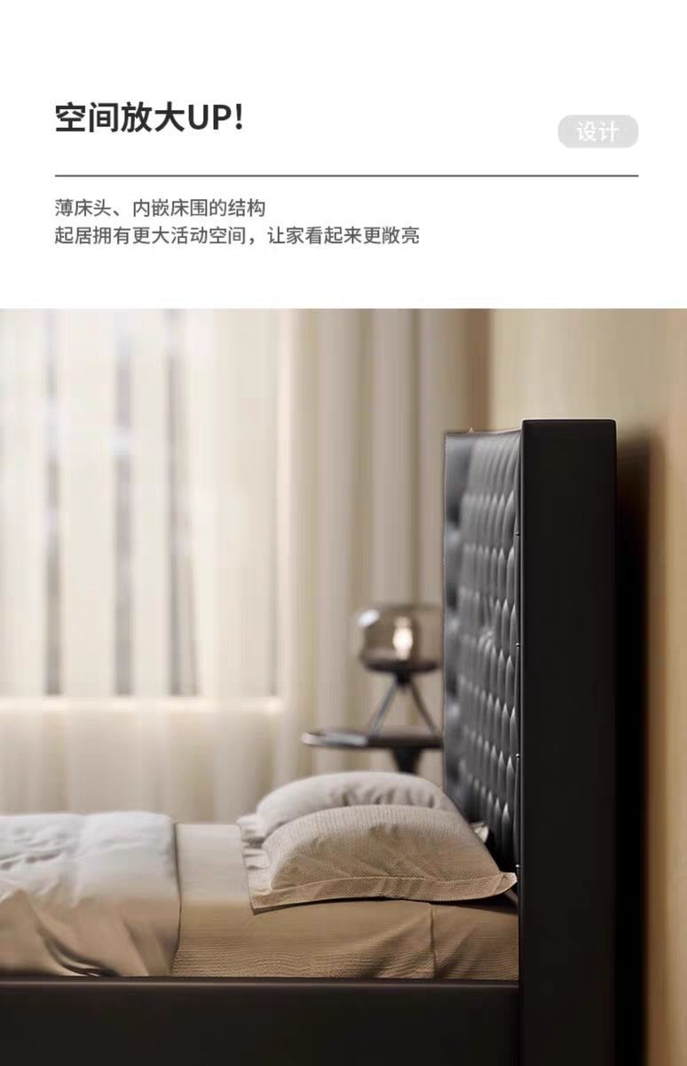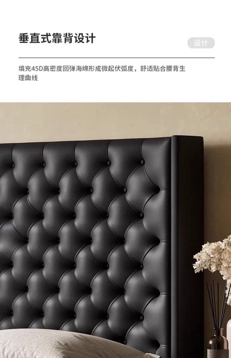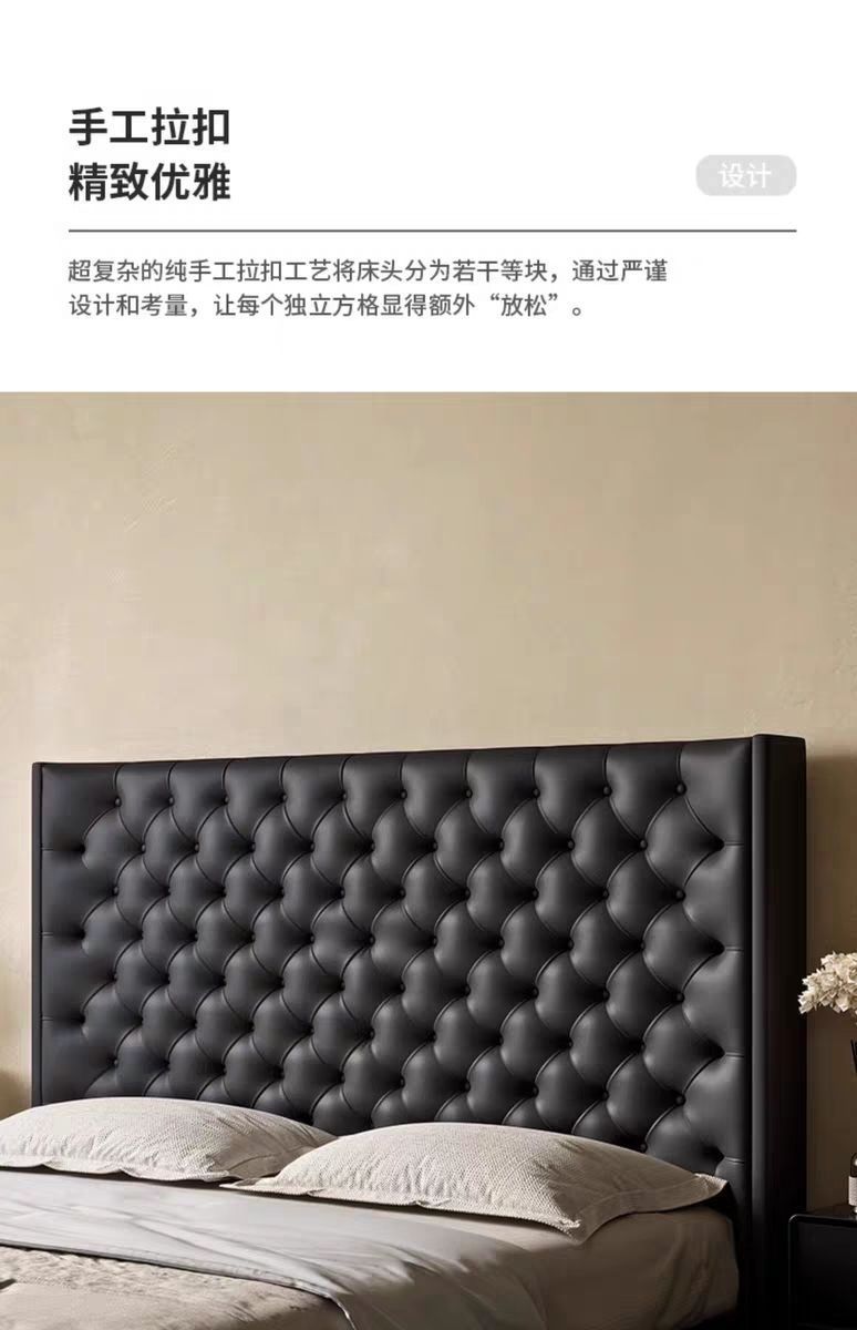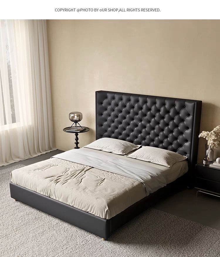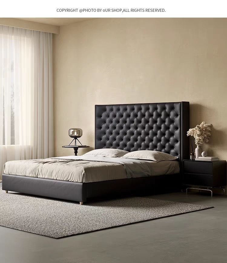 Xiaoyi Wabi-sabi 스타일 복고풍 검정색 미니멀리스트 가죽 침대 현대적인 미니멀리스트 마스터 침실 버클 프렌치 더블 소프트 가죽 침대스토어 가기
