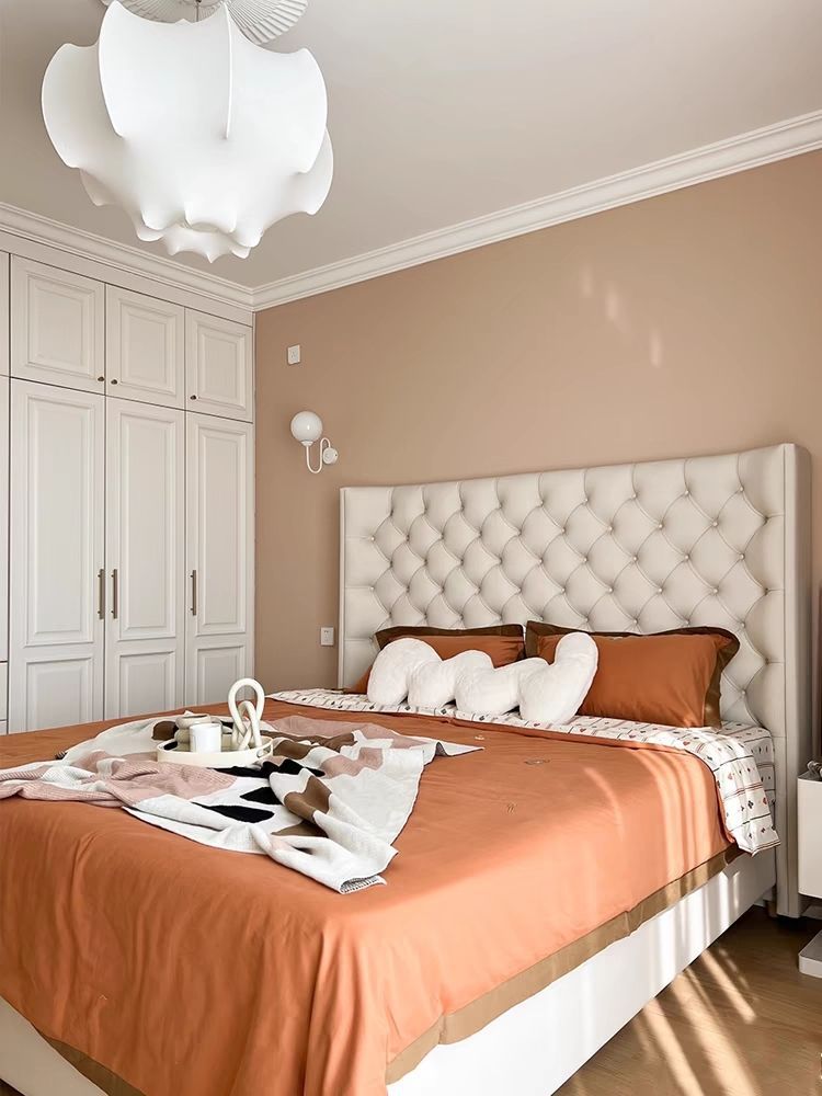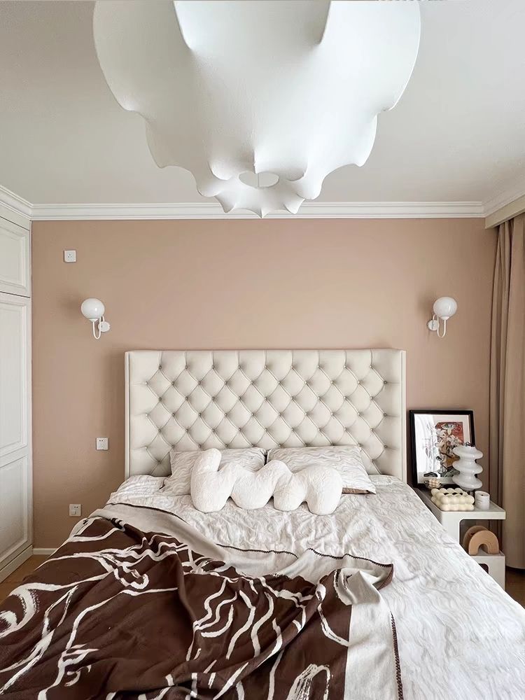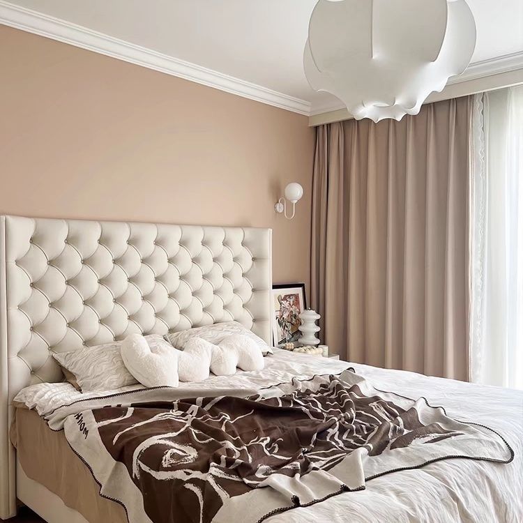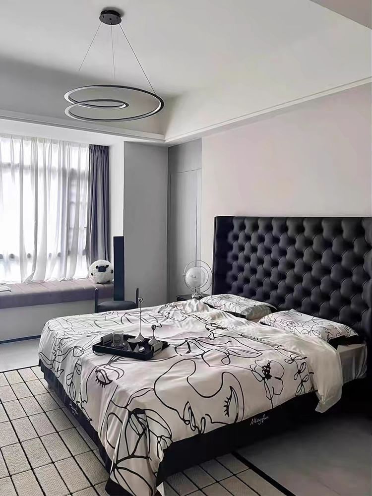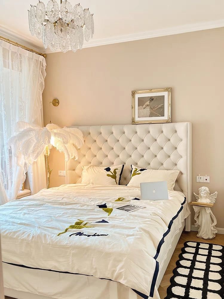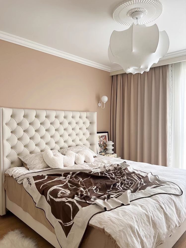 Xiaoyi Wabi-sabi 스타일 복고풍 검정색 미니멀리스트 가죽 침대 현대적인 미니멀리스트 마스터 침실 버클 프렌치 더블 소프트 가죽 침대스토어 가기