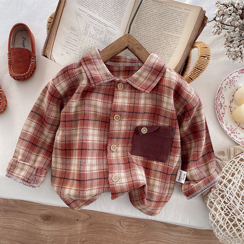 베이비 체크 무늬 셔츠 2025 코트 투피스 세트 소년 소년 대외 무역 국경 간 잘 생긴 옷 유행 아동복스토어 가기