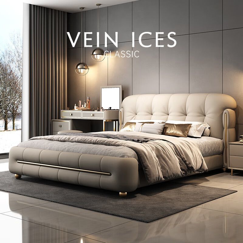 가벼운 고급 가죽 침대 현대적인 미니멀리스트 1.9m 5마스터 침실 가죽 더블 침대 퀸 사이즈 2.2m 수납 웨딩 침대스토어 가기
