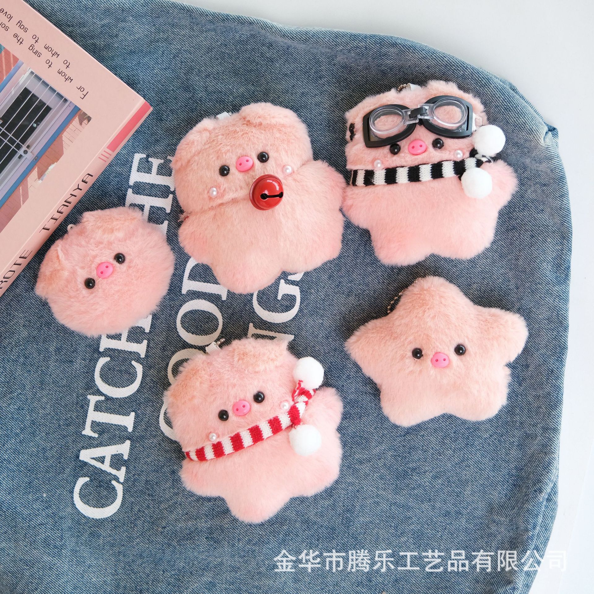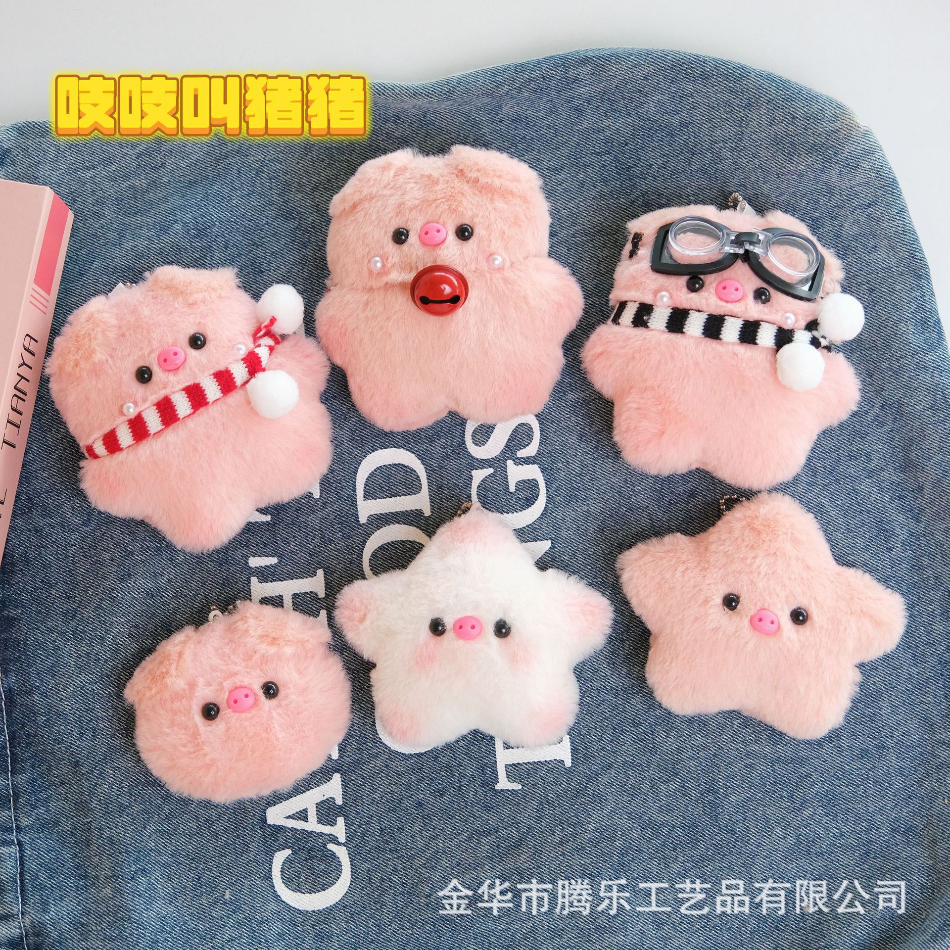 Tengle 만화 귀여운 돼지 머리 삐걱거리는 인형 돼지 가방 펜던트 플러시 키 체인 인형