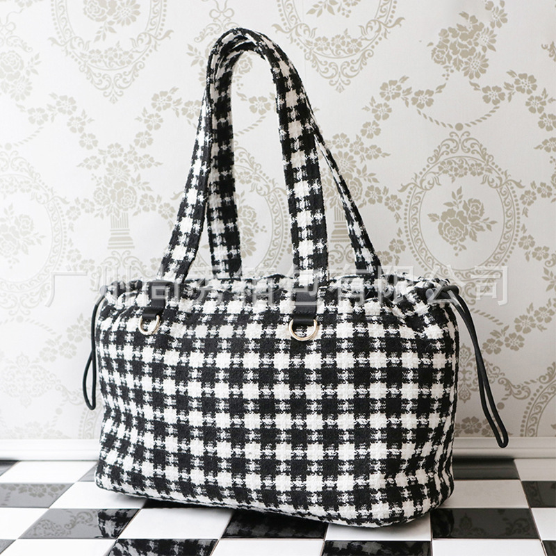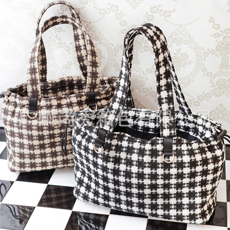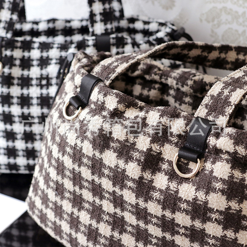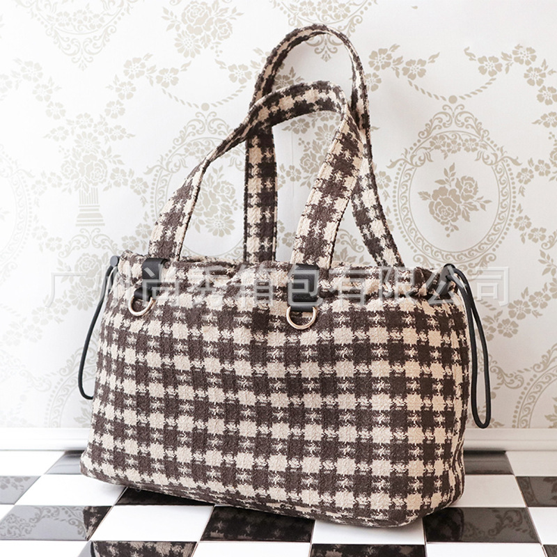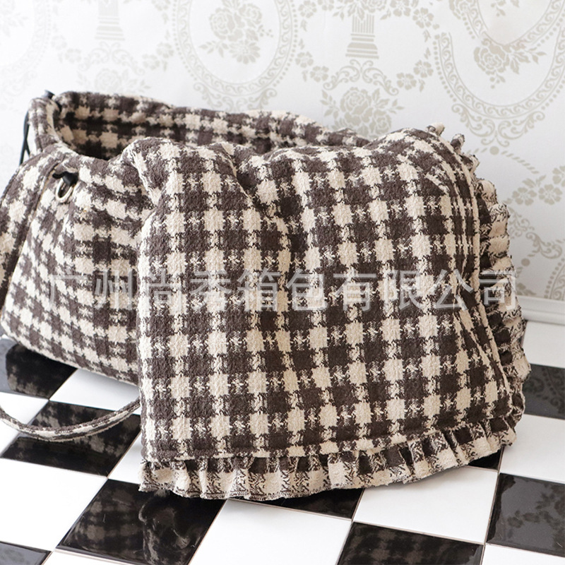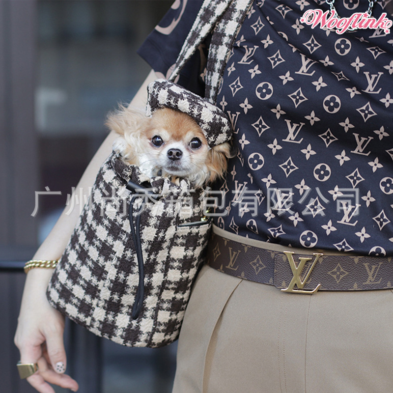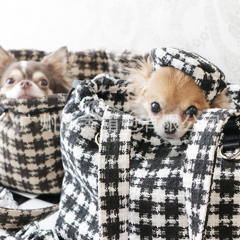 Xiaohongshu 핫 콘트라스트 컬러 체크 애완 동물 휴대용 가방 겨울 따뜻한 작은 향기 스타일 대용량 강아지 외출 토트 백