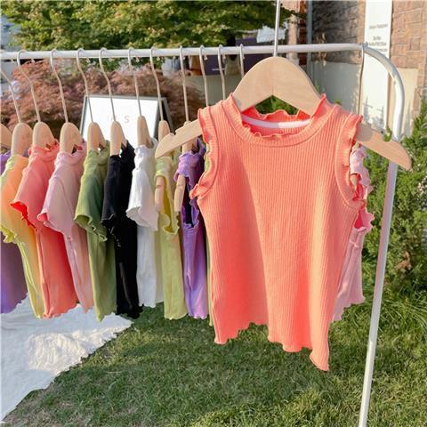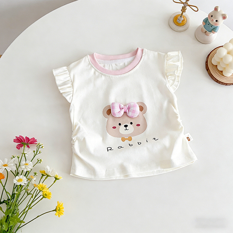 여자 귀여운 만화 반팔 티셔츠 25 새로운 여름 스타일 아기 소녀 작은 플라잉 슬리브 조끼 토끼 프린트 탑 3스토어 가기