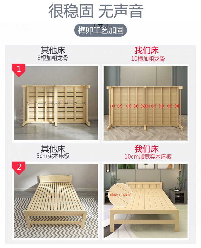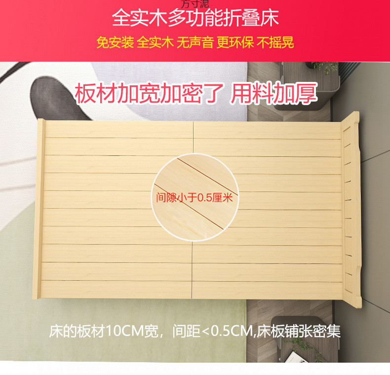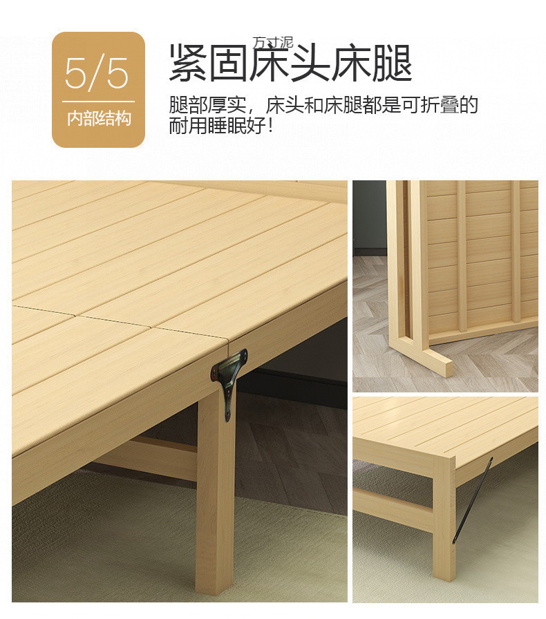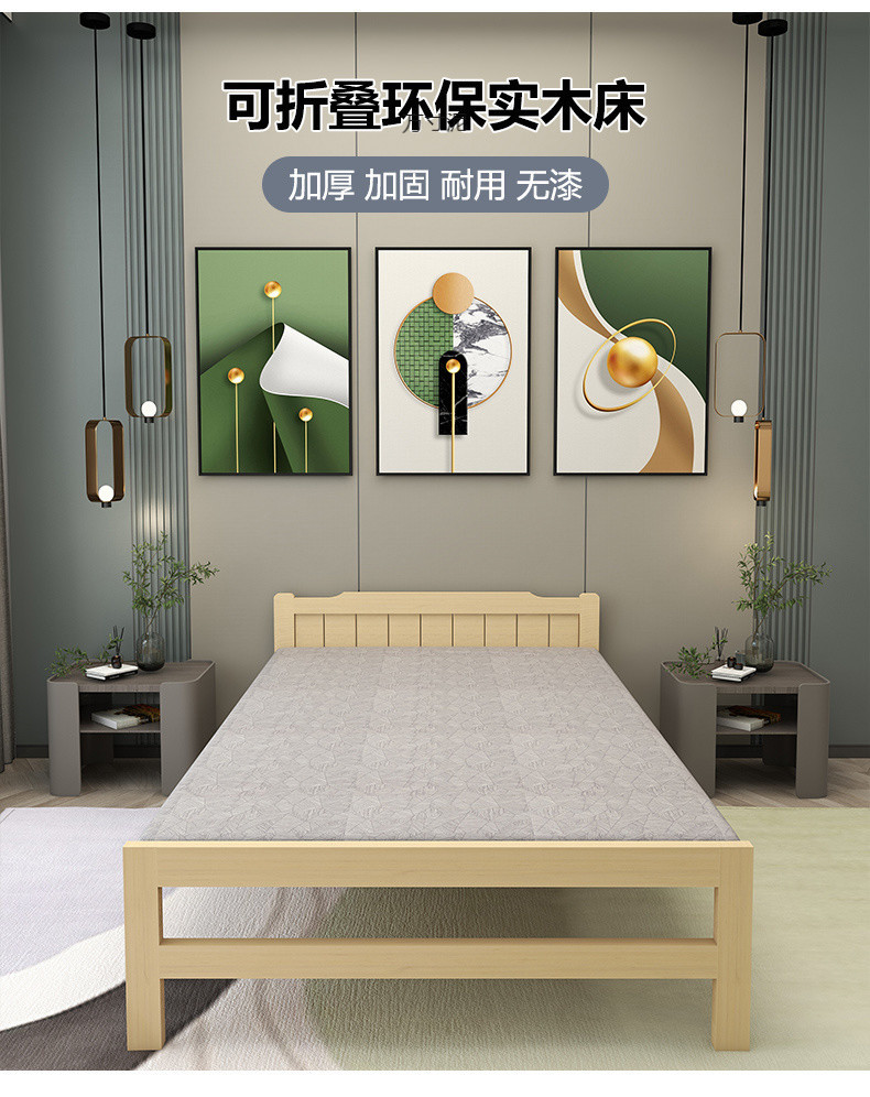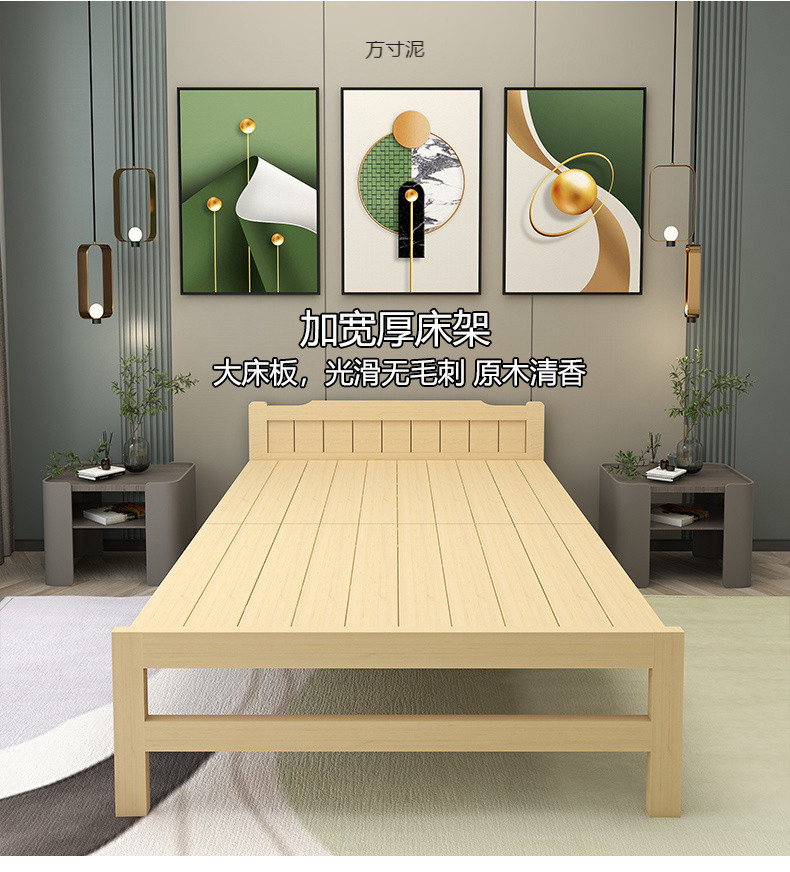 가정용 성인용 단단한 나무 접이식 침대 싱글 침대 간단한 단단한 나무 임대실 어린이용 작은 침대 더블 낮잠 침대
