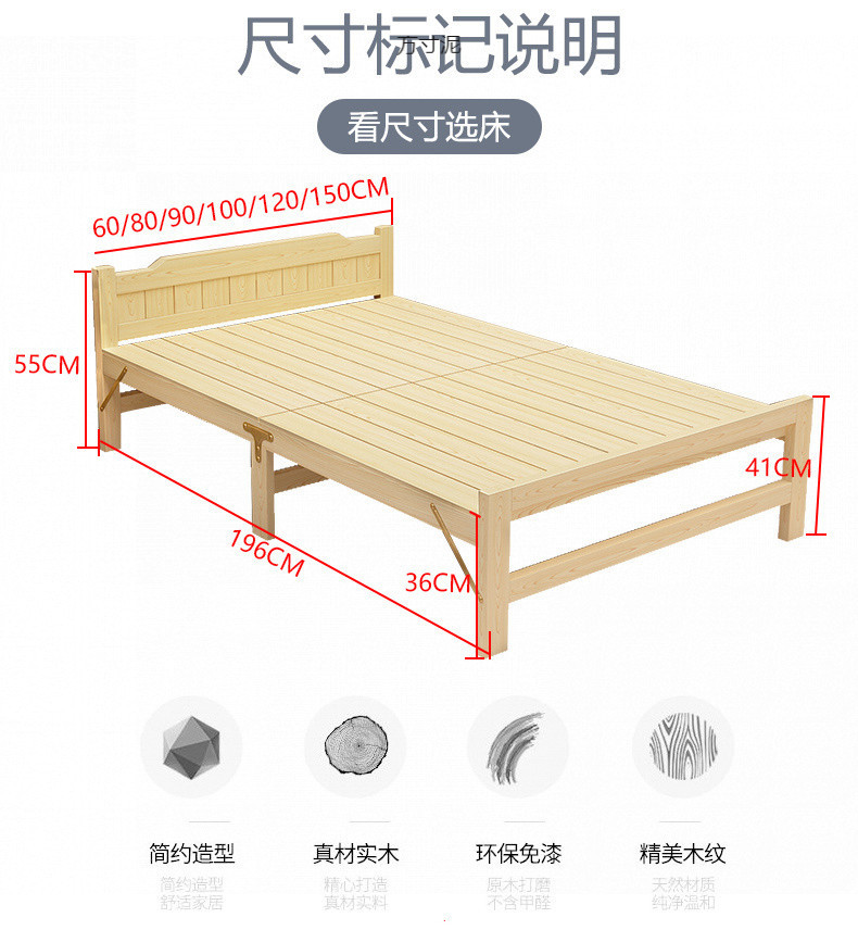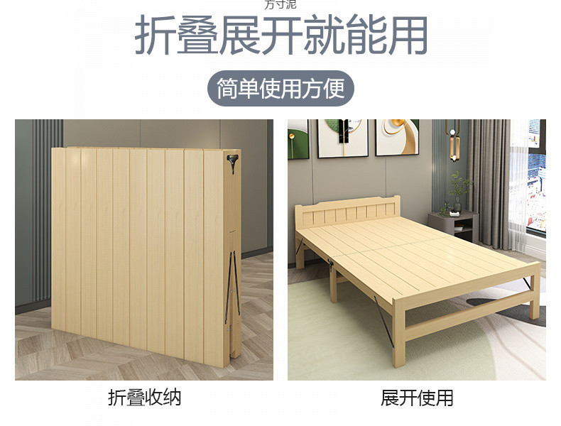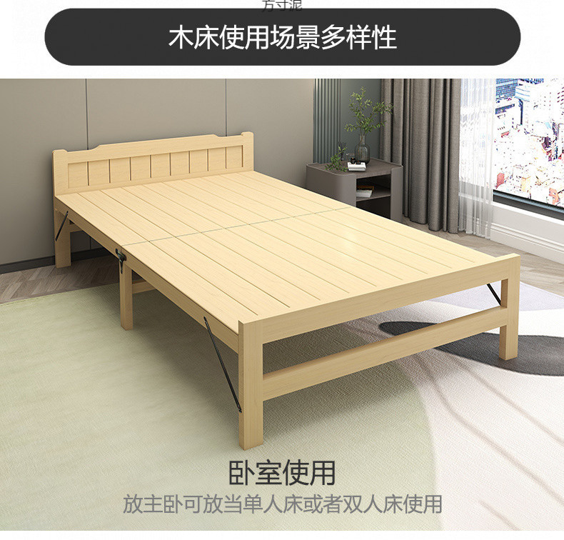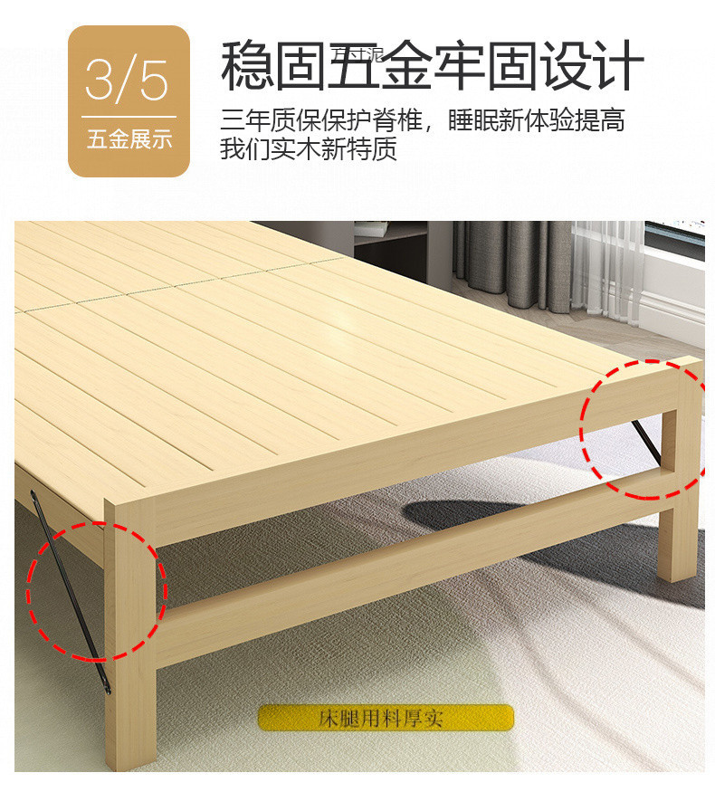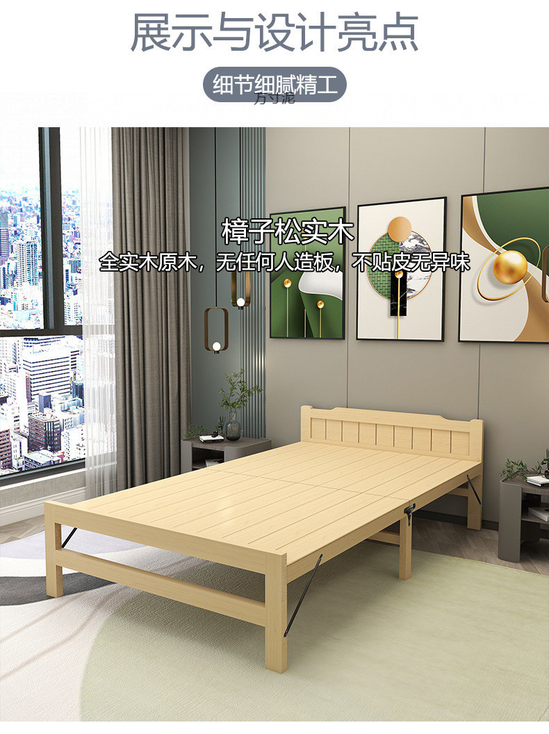 가정용 성인용 단단한 나무 접이식 침대 싱글 침대 간단한 단단한 나무 임대실 어린이용 작은 침대 더블 낮잠 침대스토어 가기