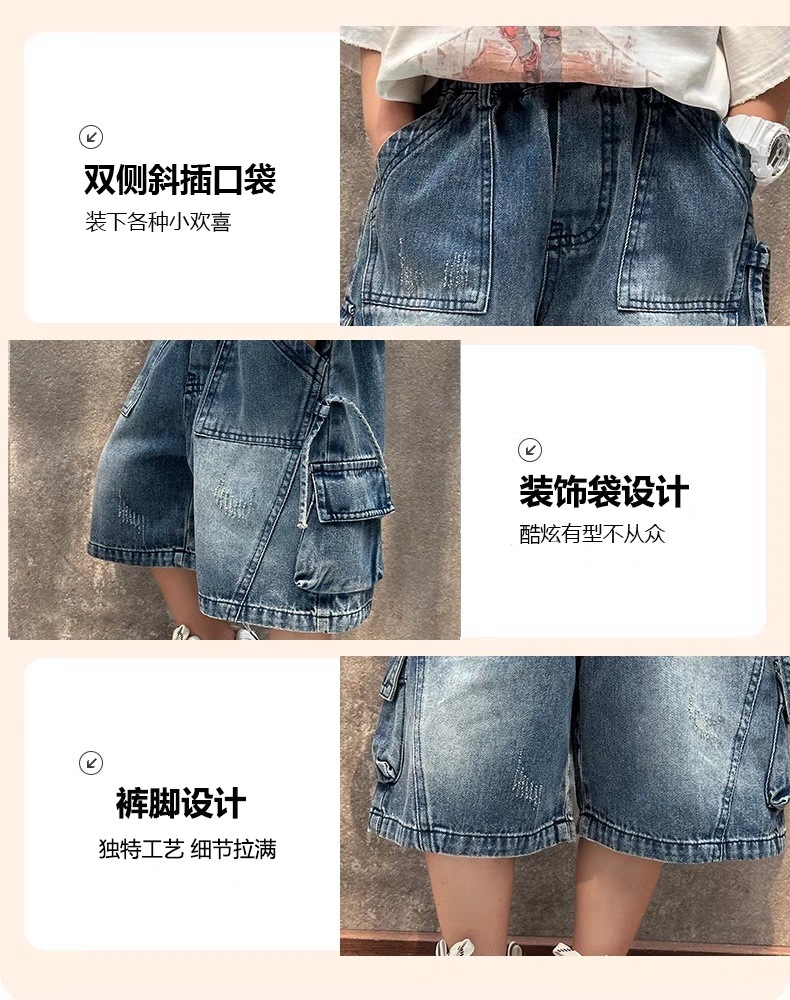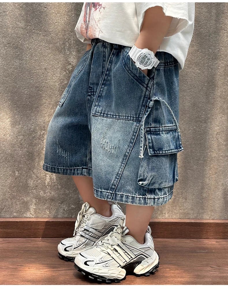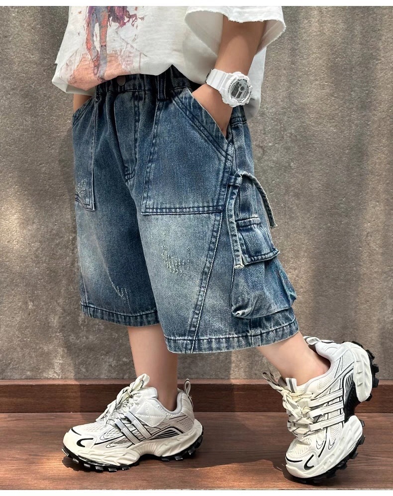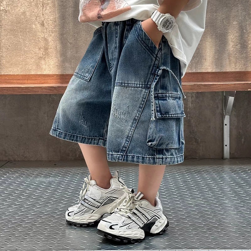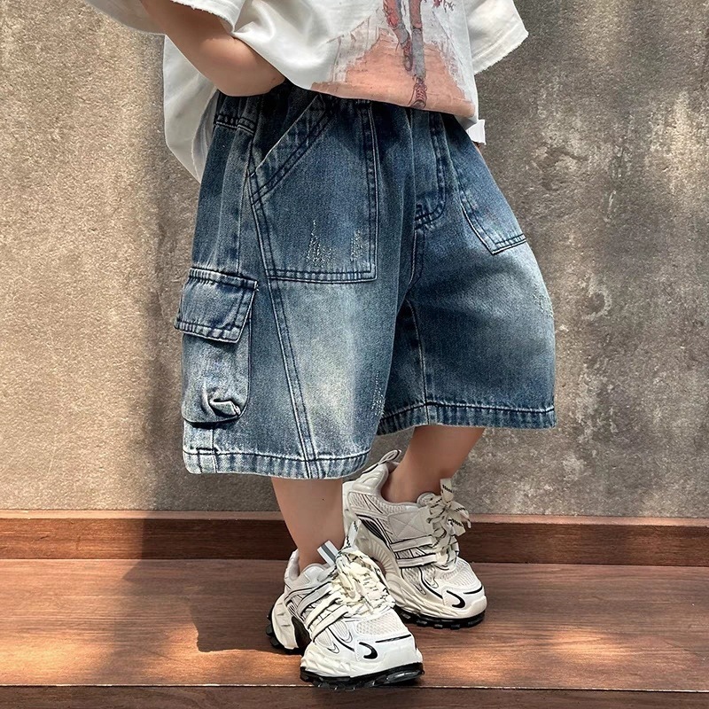 소년 데님 반바지 2025 새로운 스타일 여름 어린이 작업복 바지 한국 스타일 느슨한 아동 의류 잘 생긴 유행 브랜드스토어 가기